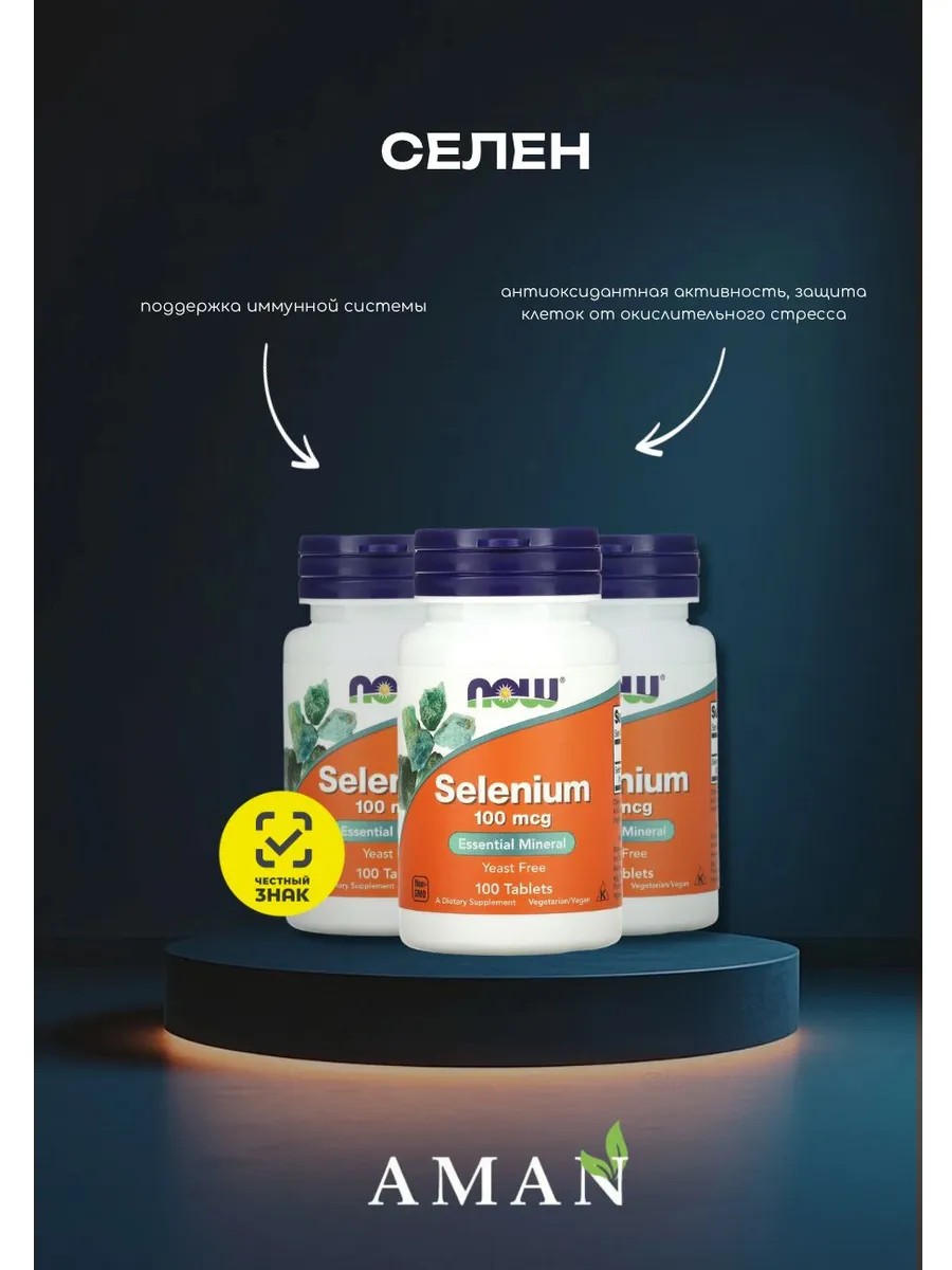 NOW Selenium Селен витамины - способствующий росту волос, препятствующий процессу старения. Селен снижает негативные действия неблагоприятных экологических факторов.