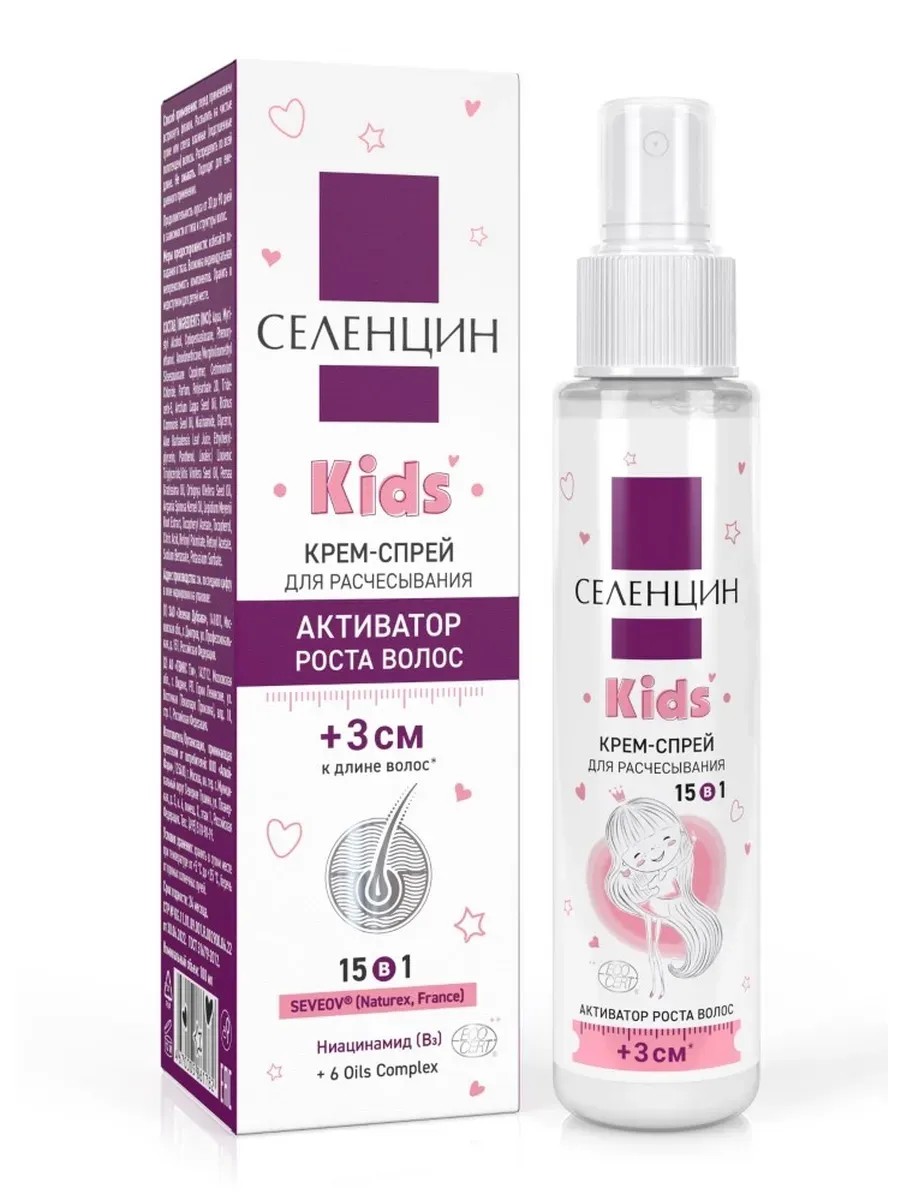 Selencin children's hair growth cosmetics are based on the plant-based active ingredient Seveov - a specialized patented complex from Naturex (France).