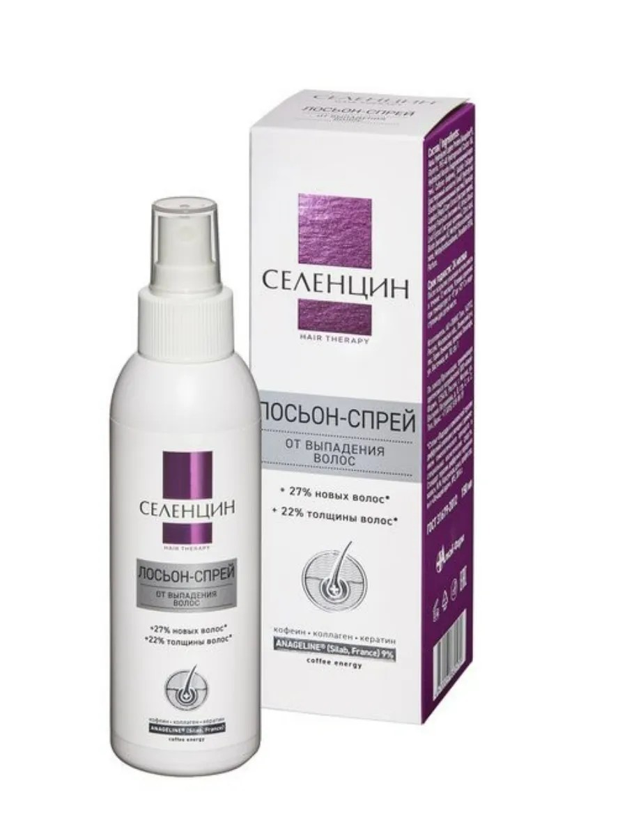 Селенцин лосьон-спрей от выпадения волос hair therapy - это косметическое средство, которое рекомендуемо для предотвращения хронического, длительного выпадения и поредения волос, для укрепления и восстановления жизненного цикла волосяных фолликулов. Является одним из лучших средств для ухода за выпадающими, ломкими, секущимися и истонченными волосами. Улучшая микроциркуляцию крови и доставку питательных веществ непосредственно к корням волос, укрепляет корни, увеличивает диаметр каждого волоса и количество волос в стадии роста, препятствует выпадению тонких пушковых волос, переводя их во взрослую здоровую фазу. Лосьон-спрей удобен и прост в применении: легко наносится, быстро высыхает, не требует смывания. При этом он не оставляет жирного блеска, не утяжеляет и не склеивает волосы. Селенцин лосьон-спрей от выпадения волос hair therapy - эффективное средство для борьбы с проблемой выпадения волос и для восстановления их здоровья и красоты.