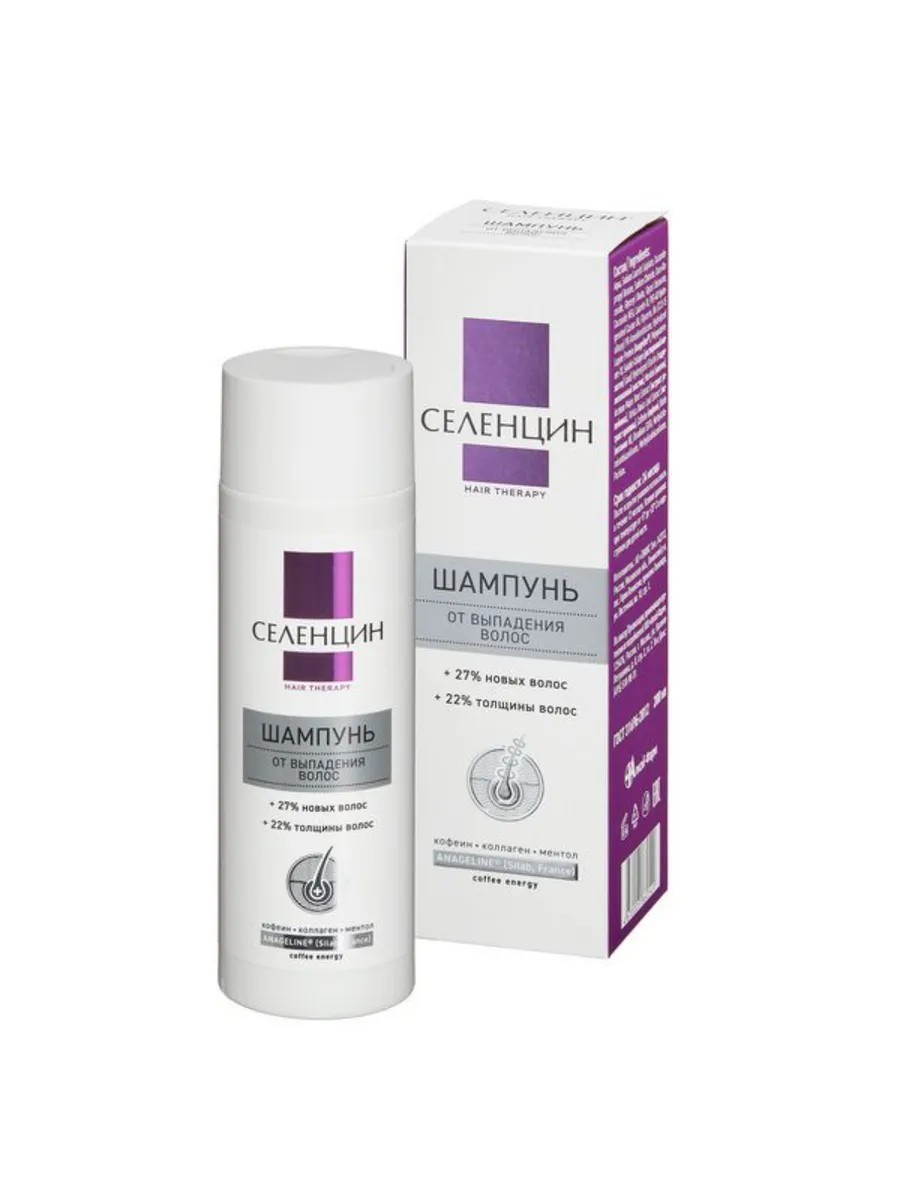 Шампунь также увлажняет и защищает волосы от пересыхания и повреждений, делая их мягкими, блестящими и более управляемыми. Селенцин Hair Therapy идеально подходит для тех, у кого есть проблемы с выпадением волос или для тех, кто хочет укрепить и улучшить состояние своих волос. Объем флакона - 200 мл.