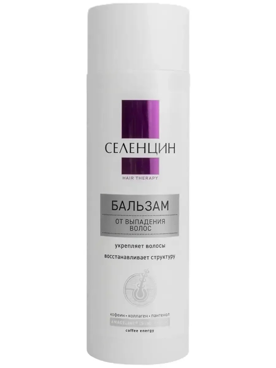 Профессиональный бальзам против выпадения волос Селенцин. Часть программы по лечению алопеции. Уникальный женский бальзам для волос. Единственный ополаскиватель, где есть Anageline - экстракт люпина, технология лаборатории Silab (Франция). Регулирует метаболизм в клетках фолликулов. Способствует разрастанию капиллярной сети, усиливая питание корней и восстанавливая волосы. Останавливает выпадение волос, продлевая фазу активного роста. Кофеин, экстракты репейника и мяты усиливают действие люпина. Можно применять как бальзам от выпадения волос при алопеции. Прекрасно кондиционирует. В бальзам-ополаскиватель для волос включены коллаген, биотин, пантенол. Восстановители дают профессиональный уход за волосами. Бальзам для волос подходит для сухих, поврежденных и жирных волос, как для женщин, так и для мужчин. После использования бальзама волосы становятся крепкими, гладкими, блестящими.Помогает при стрессовом выпадении волос, послеродовом выпадении волос, постковидном выпадении волос (выпадение волос после COVID-19), гормональном выпадени волос, а также выпадении волос, вызванным нарушениями функций щитовидной железы, выпадении волос после химиотерапии, выпадении волос при приеме антибиотиков и других лекарств и препаратов.