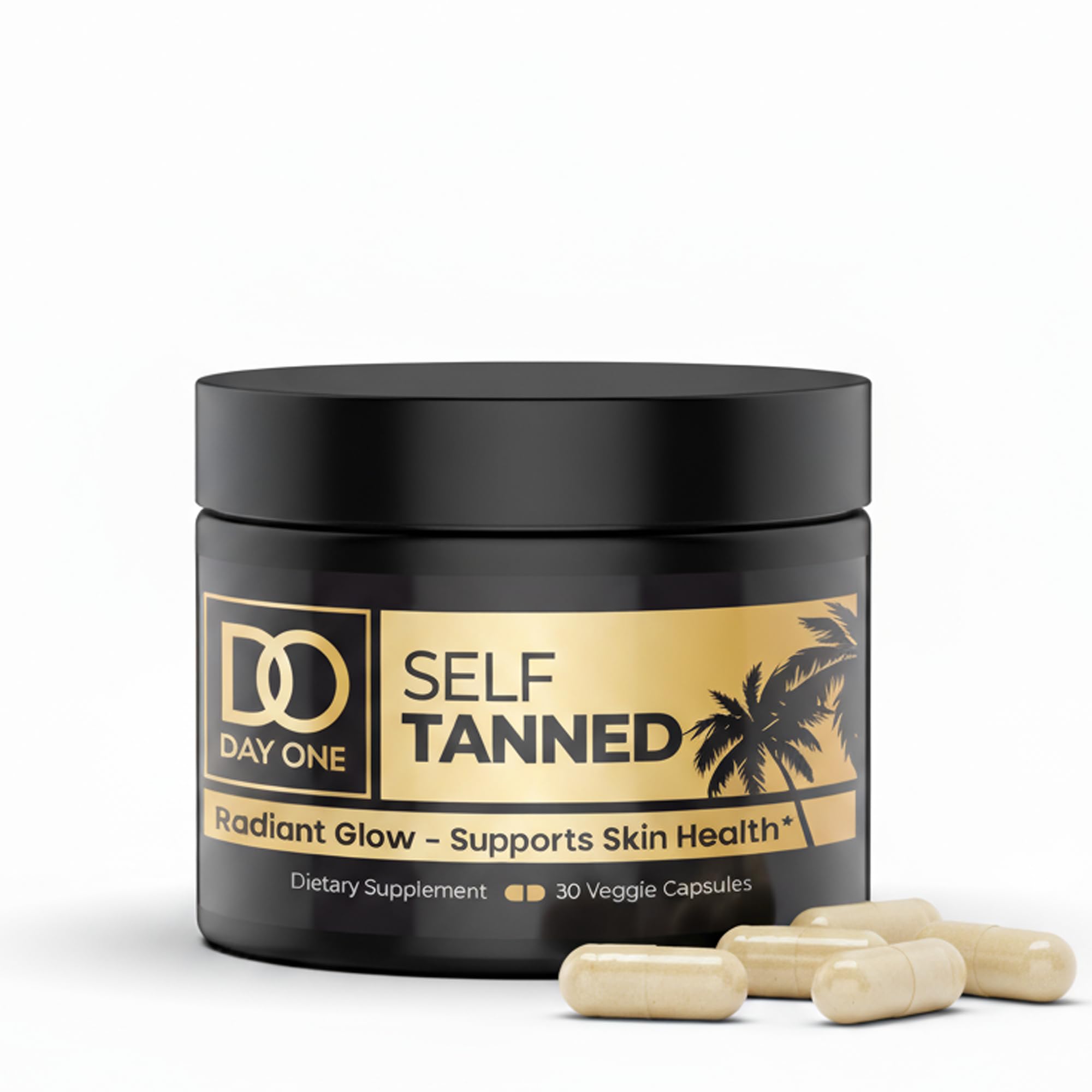MAX YOUR GLOW : Achieve a flawless, sun-kissed tan effortlessly with Self Tanned, an advanced tanning capsule crafted to help you start your journey to radiant, even-toned skin—your personal Day One Formula for a better you. TAN ENHANCEMENT?: Powered by L-Tyrosine, Beta-Carotene, and Astaxanthin, this unique formula stimulates melanin production, the pigment responsible for tanning. L-Tyrosine acts as a key building block for melanin, accelerating the tanning process and ensuring a deeper, more uniform glow. SKIN PROTECTION : Astaxanthin's potent antioxidants shield your skin from UV damage, reducing redness, soothing inflammation, and supporting a long-lasting, healthy tan that complements your natural beauty. RADIANT COMPLEXION?: Beta-Carotene enhances your skin's natural tone with a warm, golden hue while protecting against sunburn, and Vitamin D nourishes and revitalizes your skin, promoting a healthier, more vibrant appearance. EASY TO TAKE : Simply take one Self Tanned capsule daily with food for optimal results. Begin to notice a visible improvement in your skin tone and tanning within 30 days, setting the foundation for a brighter, more confident you.EASY TO TAKE: Simply take one Self Tanned capsule daily with food for optimal results. Begin to notice a visible improvement in your skin tone and tanning within 30 days, setting the foundation for a brighter, more confident you. RADIANT COMPLEXION: Beta-Carotene enhances your skin's natural tone with a warm, golden hue while protecting against sunburn, and Vitamin D nourishes and revitalizes your skin, promoting a healthier, more vibrant appearance. SKIN PROTECTION: Astaxanthin's potent antioxidants shield your skin from UV damage, reducing redness, soothing inflammation, and supporting a long-lasting, healthy tan that complements your natural beauty. TAN ENHANCEMENT: Powered by L-Tyrosine, Beta-Carotene, and Astaxanthin, this unique formula stimulates melanin production, the pigment responsible for tanning. L-Tyrosine acts as a key building block for melanin, accelerating the tanning process and ensuring a deeper, more uniform glow. MAX YOUR GLOW: Achieve a flawless, sun-kissed tan effortlessly with Self Tanned, an advanced tanning capsule crafted to help you start your journey to radiant, even-toned skin—your personal Day One Formula for a better you.