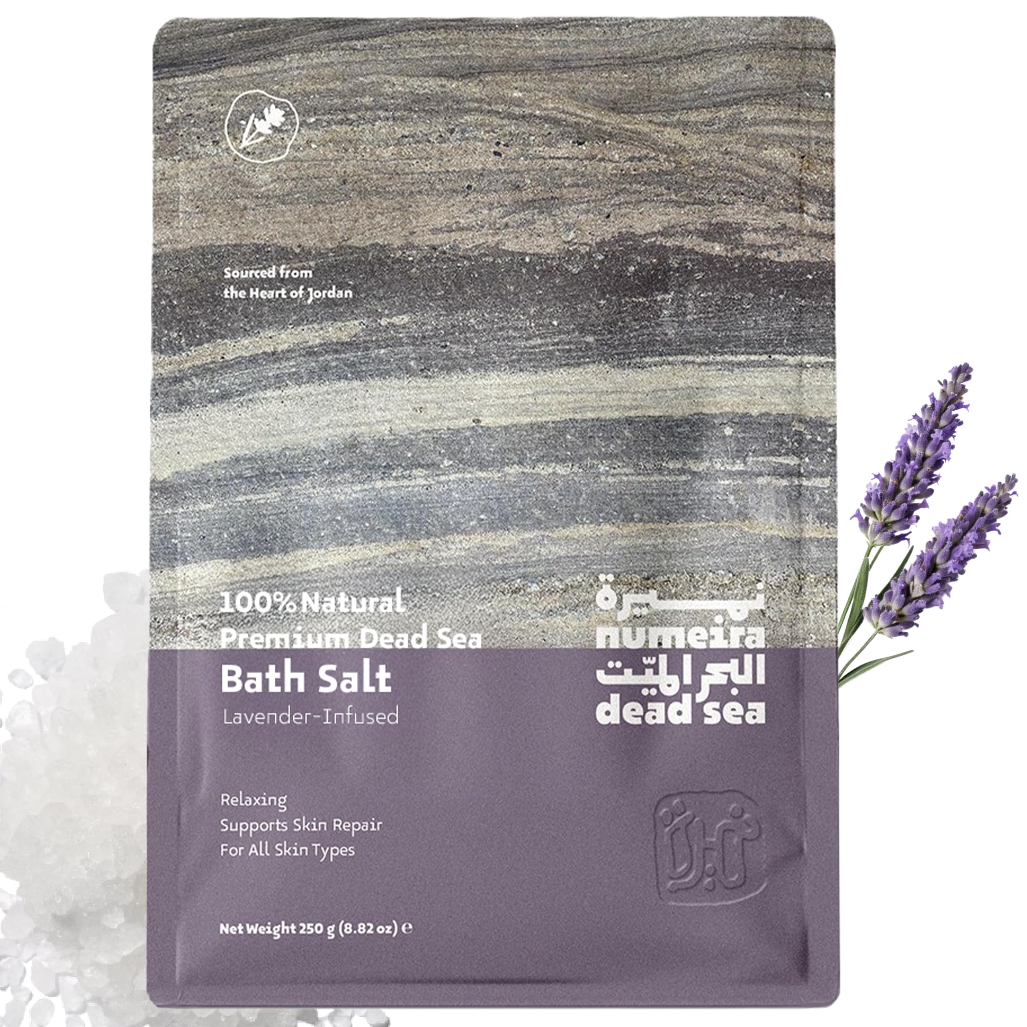 : Discover the natural power of Numeria Dead Sea Bath Salts, extracted from the mineral-rich waters of the Dead Sea in Jordan and infused with soothing lavender oil. These pure salts are free of additives, fragrances, and colors, nourishing the skin, soothing tired muscles, and promoting relaxation. Numeria bath salts are perfect for hydration and rejuvenating detoxification, while the calming lavender scent provides a spa-quality experience. Transform your bathroom into a luxurious indulgence for body and mind. Directions: Dissolve 1 to 2 cups of bath salts in warm water and treat yourself to a rejuvenating Dead Sea soak. Safety Warning: For external use only. Avoid contact with eyes. Discontinue use if irritation occurs. See more