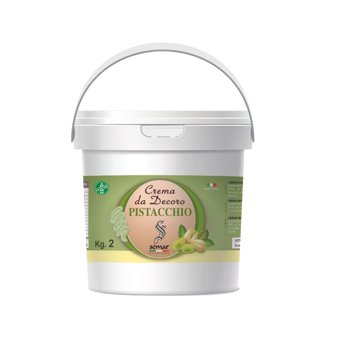 Our PISTACHIO chocolate spread has a smooth texture that can be easily spread on all types of food, from toast to brioche. It has a delicate, mild, not-too-sweet taste and contains no artificial flavors. Our chocolate is made and packaged in ITALY and is GLUTEN-FREE! Ideal for home and professional use (Bar Ice Cream Parlor Hotel). Manufactured and packaged by SemarItalia - each bucket contains 1 kg of chocolate.