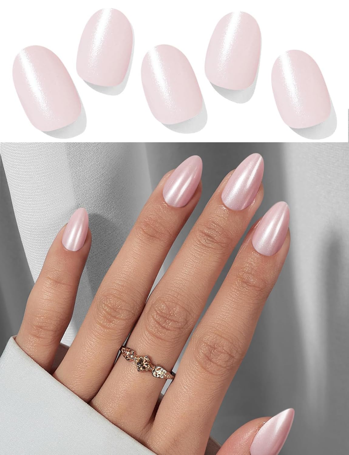 Semi Cured Gel Nail Strips | 20pcs Pink Pearl Shimmer Gel Nail Stickers UV | Semi Cured Gel Nail Wraps for Home Nails DIY