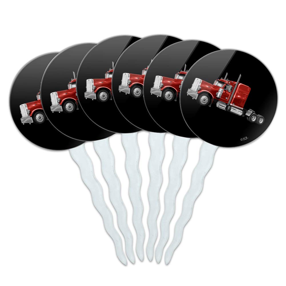 Semi Tractor Trailer Truck Trucker Cupcake Picks Toppers Decoration Set of 6
