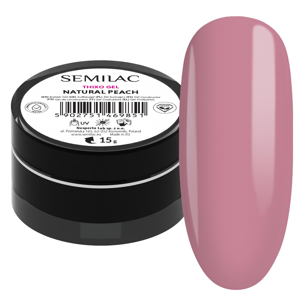 Semilac Builder Thixo Gel Natural Peach 15 g - Construction pour extension et reconstruction des ongles - UV LED - thixotrope et auto-lissant - Gel semi-couvrant