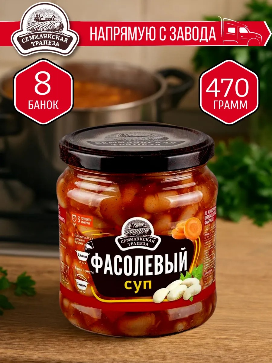 Представляем вашему вниманию «Суп фасолевый Семилукская трапеза» — идеальное решение для тех, кто ценит время и заботится о своем здоровье. Этот готовый суп в банке объединил в себе самые полезные ингредиенты и предлагает вам незабываемое вкусовое путешествие с каждым глотком. Среди множества консервированных продуктов «Семилукская трапеза» заслуженно выделяется высоким качеством и натуральностью составляющих. Погрузитесь в мир вкуса и аромата с нашим фасолевым супом. Кремовая текстура и насыщенный вкус заставят вас забыть о тех днях, когда приходилось долго стоять у плиты, чтобы насладиться домашней трапезой. Этот суп — это больше, чем просто еда; это ваше время и удобство, заключенные в стеклянную банку. С ним каждый ваш обед или ужин станет домашним праздником вкусовых ощущений. Возьмите его с собой в поход или насладитесь им дома, когда вам захочется чего-то простого, но одновременно изысканного. Наша продукция специально разработана для тех, кто выбирает правильные гарниры и заботится о своем рационе. Семилукская трапеза предлагает вам постный суп без мяса, который порадует всех любителей диетического и пп питания. Фасолевый суп в банке — это настоящий гость на вашем столе, который восхитит не только своих ярким вкусом, но и удобством. Ведь что может быть лучше, чем быстро разогреть готовое блюдо и насладиться каждодневным ужином без лишних усилий? Консервы с овощами и фасолью делают этот суп настоящей кладовой полезных веществ и витаминов. «Семилукская трапеза» — это правильный выбор для тех, кто хочет заполнить свой день здоровыми и полезными продуктами, не затрачивая времени на их приготовление. В банке с фасолевым супом вас ждет не просто еда, а целый мир домашнего уюта и гастрономического наслаждения. Идеальный гарнир, богатый клетчаткой и белком, наш фасолевый суп станет замечательным дополнением к вашей коллекции готовых блюд. Откройте для себя мир настоящего вкуса и пользы с супами в банках от Семилукская трапеза и делайте выбор в пользу качественной и готовой еды, которая всегда под рукой.