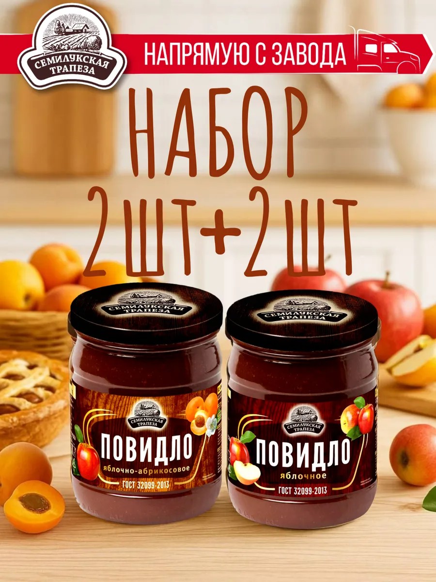 Семилукская Трапеза НАБОР: СТ Повидло Яблоко-абрикос 600г-2 шт+Яблоко 600г-2 шт.