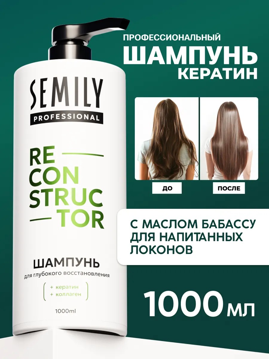 This professional hair shampoo, available in a large 1-liter bottle, gently cleanses the scalp and is suitable for daily hair care, providing root volume and hydration. This deep cleansing product prevents dandruff and flakiness with its gentle action. The moisturizing formula is ideal for daily use on sensitive and dry scalps. The gentle, sulfate-free formula won't dry out hair: its sulfate-free formula with moderate lather is suitable for men's and women's hair, color-treated hair, curly hair, and oily hair. This sulfate-free cleansing shampoo doesn't strip pigment and neutralizes brassiness, making it suitable for blondes with bleached and highlighted strands. It combats breakage and adds volume at the roots. Semily shampoos and conditioners in 1-liter bottles offer a great value without sacrificing quality. Purchase the moisturizing conditioner for comprehensive hair care to maximize the benefits. A natural formula with babassu nut oil softens hair, deeply nourishes and strengthens it along its entire length, repairing split ends. Formulated with oils and keratin, it meets Korean standards. This product structures curly, porous, brittle, and frizzy locks and provides a laminating effect, leaving hair radiant with a healthy shine from root to tip. The activator stimulates rapid growth, improves circulation, and helps prevent hair loss. Its sebum-regulating properties normalize oiliness, prevent seborrhea, and combat dandruff. We also recommend the 2-in-1 keratin set for restoring damaged strands. This balancing Korean shampoo, free of SLS and parabens, gently cleanses the skin and can be used after scrubs, peels, and micellar detox treatments. This affordable, 1-liter shampoo with a convenient dispenser is economical—one bottle will last for six months. Semily skincare products are the perfect gift for a woman or girl on her birthday, March 8th, February 14th, or New Year's.