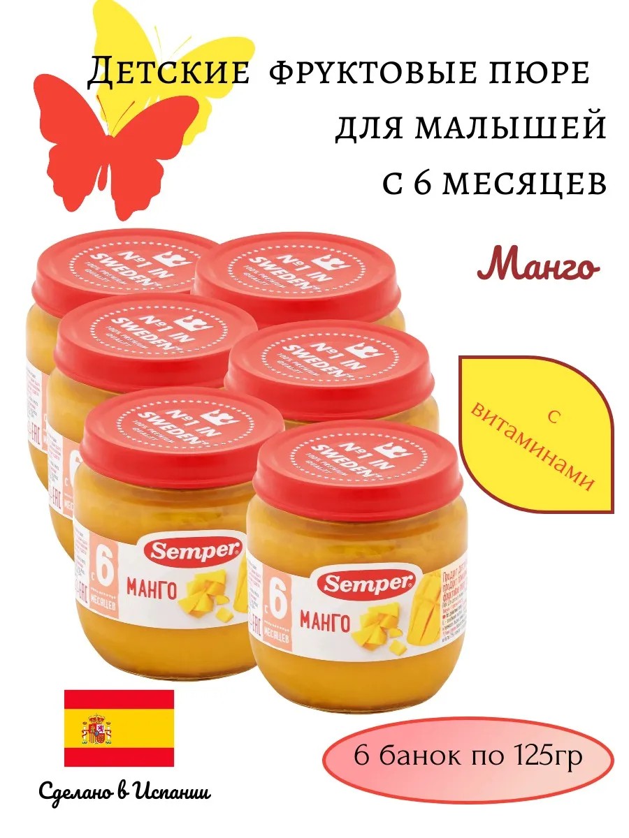 Пюре фруктовое Семпер Манго с витаминами – удивительно вкусный, сытный и полезный перекус. Имеет мягкую консистенцию и приятный вкус. Не содержит сахара, сладость придает естественный натуральный вкус фруктов. Содержит витамины и пектиновые вещества, которые обладают абсорбирующими свойствами и улучшают перистальтику кишечника.