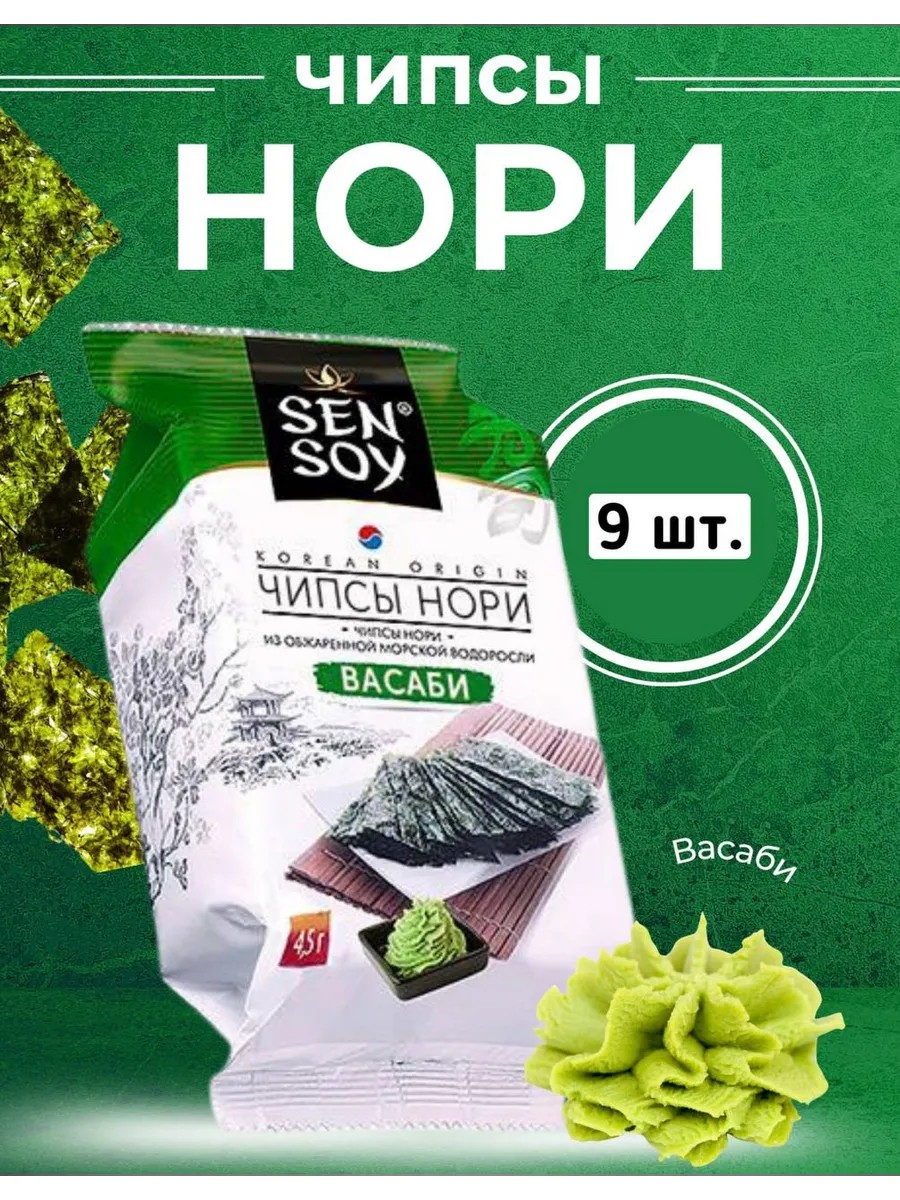 Морская капуста нори сенсой- это удобный и полезный снэк с собой, в каждой упаковке содержатся хрустящие листы нори с неповторимым вкусом васаби. Чипсы нори содержат богатый набор микро и макро элементов: йод, фосфор, магний, железо, натрий. Все витамины из группы В, а также в большом количестве витамины Е, А С и Д. Рекомендовано для веганов, вегатарианцев и людей, соблюдающих пост и диету. Водоросли нори легкие и считается полезным продуктом.