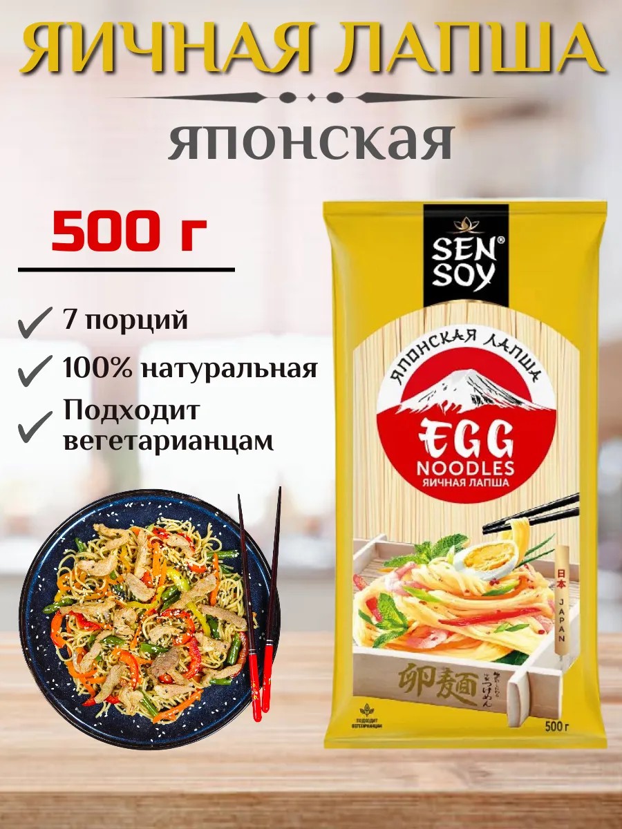 Японская яичная лапша Egg Noodles прекрасно сочетается с мясом птицы или говядиной, с морепродуктами и любыми овощами. Ее часто добавляют в супы и различные бульоны. Она может быть отварной или поджаренной во фритюре, прекрасно справляется с ролью основы сложных блюд, например, жаркого и запеканок