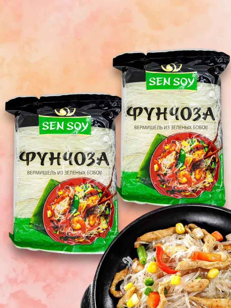 Transparent, glass-like, elastic bean vermicelli has a delicate consistency and neutral flavor, making it a perfect base for a wide variety of dishes—vegetarian and meat, seafood, and all kinds of sauces made from vegetables, fruits, herbs, and oriental spices. This vermicelli is often added to soups and broths, served as a side dish, and added to salads. The most popular of these is the salad of the same name—funchoza. It contains particularly piquant oriental spices and fresh vegetables. This salad will grace any table—from everyday to the most festive. Bean vermicelli "Funchoza" is an exotic side dish for oriental delicacies and an essential ingredient in many Asian dishes. It retains all the valuable properties of green beans, but is much more convenient and versatile to use than whole beans.