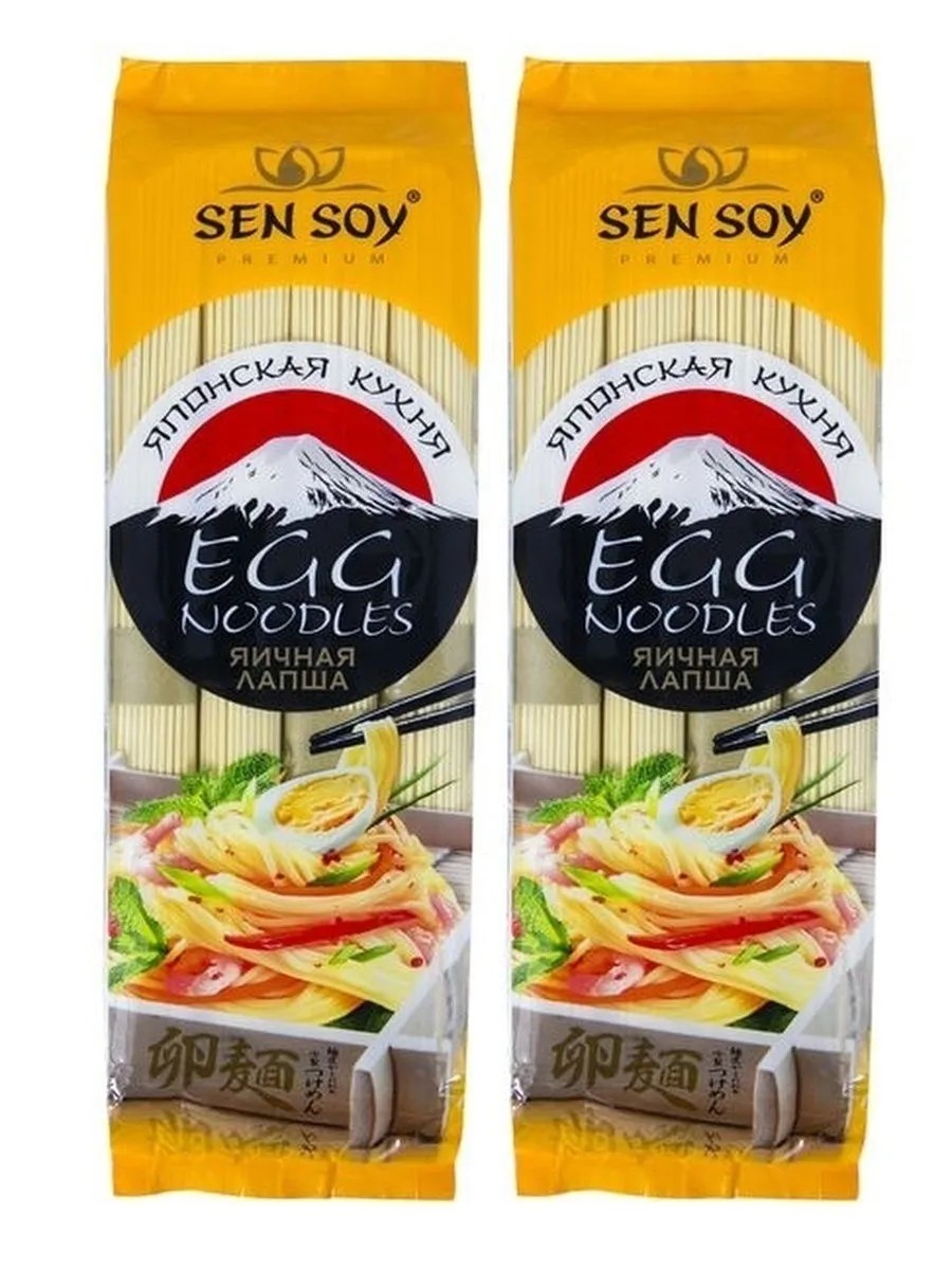 Sensoy Japanese egg noodles Egg Noodles Sen Soy Premium go well with poultry or beef, seafood and any vegetables. They are often added to soups and various broths. Sen Soy noodles can be boiled or deep-fried, and are an excellent base for complex dishes, such as roasts and casseroles. Sensoy noodles 2 pieces of 300 grams. PRODUCT STRUCTURE: wheat flour, egg powder, salt, water. NUTRITIONAL VALUE per 100g of product: Proteins - 10.72 g. Fats - 0.24 g. Carbohydrates - 76.75 g. ENERGY VALUE per 100g of product: 352 kcal.