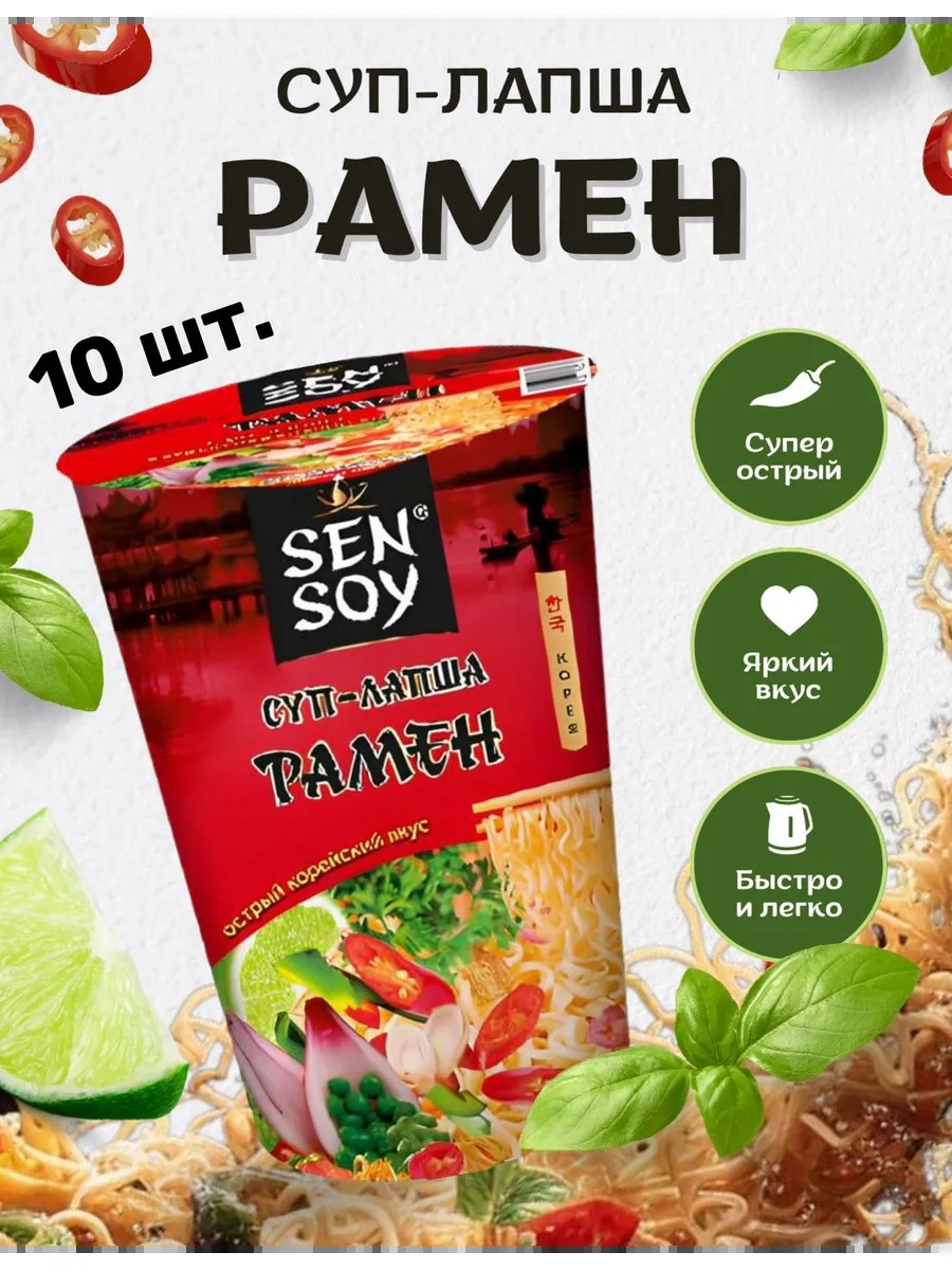 Корейский суп-лапша Рамен Сен сой сочетает остроту и пикантность перца чили и аромат креветок, придавая супу насыщенный морской вкус. Зелень и овощи добавляют блюду нотки свежести, делая его еще более аппетитным.