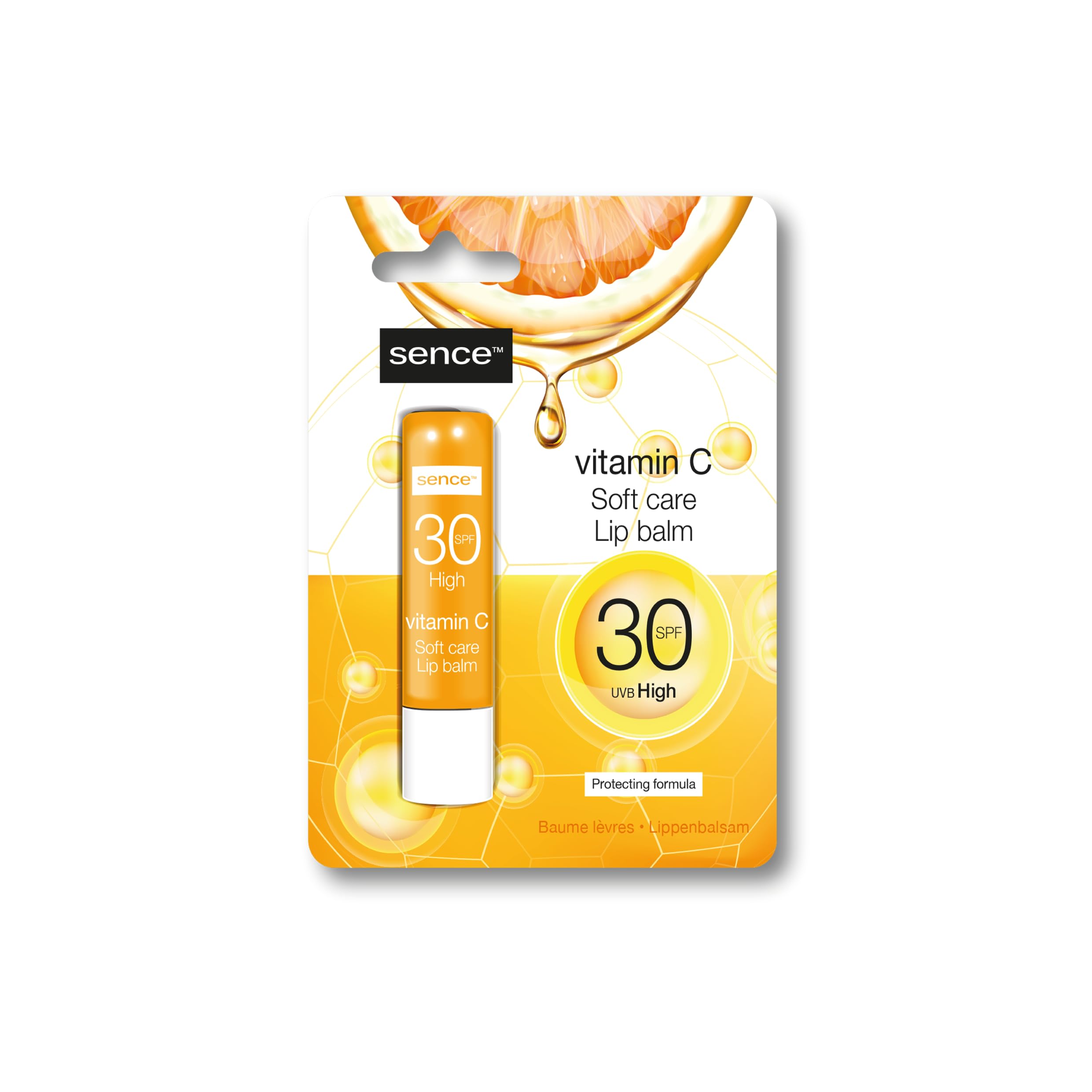 This lip balm is suitable for all skin types and can be used daily. Its SPF 30 sun-resistant formula protects you, while its formula enriched with vitamin C and ascorbic acid moisturizes your lips. This formula is suitable for vegans. Vitamin C D8 is a treasure for your skin. It not only protects your skin from harmful external aggressors such as UV rays, but also gives it a fresh and youthful appearance. This is reason enough for Sence to launch a complete dermatologically tested vitamin C beauty line. INGREDIENTS PETROLATUM, PARAFFINUM LIQUIDUM, TRIETHYLHEXANOIN, SYNTHETIC WAX, NEOPENTYL GLYCOL DIETHYLHEXANOATE, ETHYLHEXYL TRIAZONE, HELIANTHUS ANNUUS HYBRID OIL, ETHYLHEXYL SALICYLATE, BUTYL METHOXIDE Dibenzoylmethane, Bis-Ethylhexyloxyphenol Methoxyphenyl Triazine, Diisopropyl Sebacate, Paraffin, Microcrystalline Wax, Butyrospermum Parkii (Shea) Oil, Polyisobutene, Ethyl Olivate. C20-4.0 Alcohol, Tocopheryl Acetate, Phenoxyethanol, Fragrance, Polyethylene, Ethylhexylglycerin, Olive Leaf Extract, Tocopherol, Linalool. SAFETY WARNING For external use only. Do not ingest. Not suitable for children under 6 years. Keep out of reach of children. Please retain the packaging for future reference. See moreVitamin C lip balm SPF 30. Gentle lip care. UVB protection. Contains vitamin E. Directions: Apply generously and regularly (to the lips) to maintain the body, especially after sweating, drying off, swimming, eating, and drinking.Sence Lot de 2 baumes à lèvres Vitamine C SPF30DESCRIPTION DU PRODUIT DESCRIPTION DU PRODUIT Ce baume à lèvres convient à tous les types de peau et peut être utilisé quotidiennement. Sa formule résistante au soleil SPF 30 vous protège, tandis que sa formule enrichie en vitamine C et en acide ascorbique hydrate les lèvres. Cette formule convient aux végétaliens. La vitamine C D8 est un trésor pour votre peau. Il protège non seulement votre peau des agressions extérieures nocives telles que les rayons UV, mais lui donne également un aspect frais et jeune. Une raison suffisante pour Sence de lancer une ligne de beauté complète en vitamine C testée dermatologiquement INGRÉDIENTS PETROLATUM, PARAFFINUM LIQUIDUM, TRIETHYLHEXANOIN, Cire SYNTHETIC, NEOPENTYL GLYCOL DIETHYLHEXANOATE, ETHYLHEXYL TRIAZONE, HELIANTHUS ANNUUS HYBRID OIL, ETHYLHEXYL SALICYLATE, BUTYL. Méthoxye. DIBENZOYLMETHANE, BIS-ETHYLHEXYLOXYPHENOL METHOXYPHENYL TRIAZINE, DIISOPROPYL SEBACATE, PARAFFIN, MICROCRYSTALLINE WAX, BUTYROSPERMUM PARKII (SHEA), POLYISOBUTENE, ETHYL OLIVATE. C20-4. 0 alcool, acétate de tocophérol, phénoxyéthanol, parfum, polyéthylène, éthylhexylglycérine, extrait de feuille d'olive, tocophérol, linalool. AVERTISSEMENT DE SÉCURITÉ Pour un usage externe uniquement. Ne pas ingérer. Ne convient pas aux enfants de moins de 6 ans. conserver hors de portée des enfants. Veuillez conserver l'emballage afin de pouvoir le relire. Voir plusBaume à lèvres à la vitamine C SPF 30. Soin des lèvres doux Protection contre les rayons UVB. Contient de la vitamine E. Mode d'emploi : appliquer généreusement et régulièrement (au sud) pour maintenir le corps, en particulier après la transpiration, le séchage, la natation, la nourriture et la boisson.