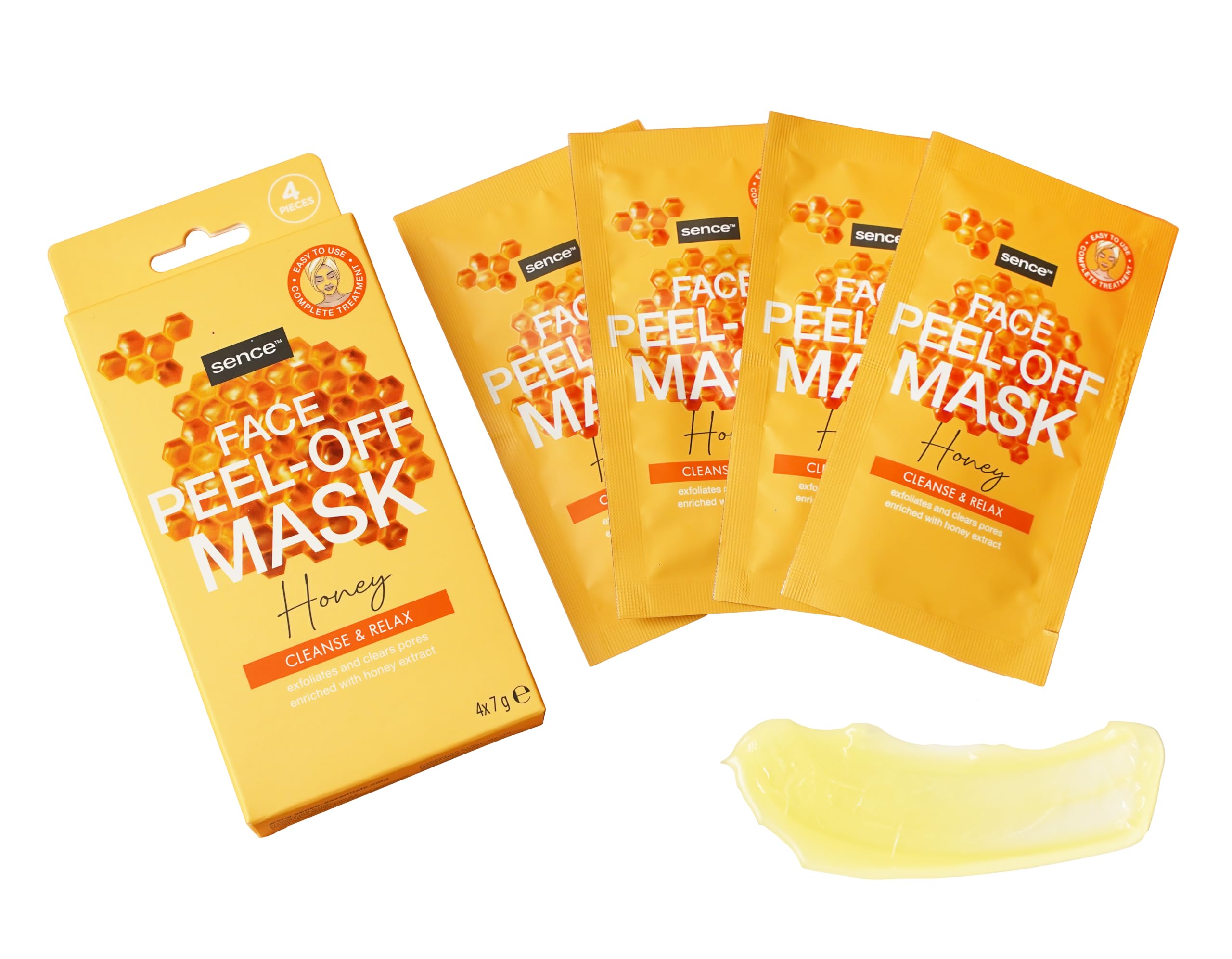 Discover the secret to radiant, clear skin with the Sence Beauty Cosmetics Honey Peel-Off Glycerin Facial Mask. Expertly formulated to cleanse and revitalize your complexion, this soothing facial treatment delivers a luxurious spa experience at home. Each pack contains four individual sachets (4 x 7g) of our unique Honey Peel-Off Mask, enriched with the natural benefits of honey and the hydrating properties of glycerin. This facial treatment is suitable for all skin types and is perfect for anyone seeking an effective facial that cleanses pores, leaving their skin soft and supple. Our Honey Mask stands out from other beauty products by specifically targeting impurities and helping to minimize pores—ideal for those with blemished skin. This facial treatment harnesses the power of honey extract, known for its soothing properties, in combination with the hydrating effect of glycerin. This is a powerful yet gentle cleanser that doesn't strip the skin of its essential moisture. The peel-off mechanism helps remove dead skin cells and effectively open pores while creating an invigorating tingle that refreshes the senses. Whether you're looking for a complete skincare kit or want to add an innovative beauty ritual to your skincare routine, Sence Beauty Cosmetics has you covered. Incorporate this extraordinary honey scrub into your weekly routine and watch it transform a dull complexion into one that is undeniably radiant. INGREDIENTS Ingredients: Aqua, Alcohol Denat., Polyvinyl Glycerin, Parfum, Phenoxyethanol, Xanthan Gum, Styrene Acrylate Copolymer, Chlorophene, Ethylhexylglycerin, Sodium Sulfate, Honey. Y EXTRACT, TRIDECETH-50, COUMARIN, LINALOOL, LIMONENE, CI 19140, CI 15985. SAFETY WARNING Not suitable for children under 12 years. See moreHoney Exfoliating Mask: Works as part of an effective treatment against impurities. Discover ultimate beauty results with regular use and improves texture and radiance. Suitable for all skin types: Suitable as a daily moisturizing mask or for occasional indulgence, it's an essential beauty product for glowing skin. Honey Mask: Enhance your beauty routine with our facial mask, perfect for skincare, it transforms routine facials into a spa experience at home. Minimize pores: This honey exfoliating mask, with 4 sheet masks for the face, reduces the appearance of pores while ensuring deep cleansing. Intensive moisturizing honey peel-off face mask: The Sence peel-off mask is enriched with glycerin and honey extract, guaranteeing deep hydration for all skin types.Sence Beauty Cosmétique Honey Peel-Off Lot de 4 masques faciaux avec glycérine, soin du visage, soin du visage, nettoyant pour les pores du visage, 4 x 7 gDESCRIPTION DU PRODUIT DESCRIPTION DU PRODUIT Décidez le secret d'une peau éclatante et claire avec le masque facial Sence Beauty Cosmétiques Honey Peel-Off à la glycérine. Conçu par des experts pour nettoyer et revitaliser votre teint, ce produit de soin du visage apaisant offre une expérience de spa luxueuse à la maison. Chaque paquet contient quatre sachets individuels (4 x 7 g) de notre masque unique au miel peel-off enrichi de la qualité naturelle du miel et de l'effet hydratant de la glycérine. Ce soin du visage convient à tous les types de peau et est parfait pour tous ceux qui recherchent un soin efficace du visage qui nettoie les pores qui rend leur peau douce et souple. Notre masque au miel se distingue des autres produits de beauté en luttant spécifiquement contre les impuretés et en aidant à réduire les pores - Idéal pour ceux qui ont des problèmes de peau impure. Ce soin du visage utilise la puissance de l'extrait de miel, connu pour ses propriétés apaisantes, en combinaison avec l'effet hydratant de la glycérine. C'est un nettoyant puissant mais doux qui n'élimine pas l'humidité nécessaire à la peau. Le mécanisme peel-off aide à éliminer les cellules mortes de la peau et à ouvrir efficacement les pores tout en créant un picotement revigorant qui rafraîchit les sens. Que vous soyez à la recherche d'un kit de soins de la peau ou que vous souhaitiez ajouter un rituel de beauté innovant à votre système de soins de la peau, Sence Beauty Cosmétique a ce qu'il vous faut. Incorporez cet extraordinaire exfoliant au miel dans votre routine hebdomadaire et regardez-le transformer un teint terne en un teint indéniablement radieux. INGRÉDIENTS Ingrédients : aqua, alcool dénat, polyvinyle, glycérine, parfum, phénoxyéthanol, gomme xanthanol, styrène acrylate de copolymère, chlorophénésine, éthylhexylglycérine, sulfate de sodium, miel. Y EXTRACT, TRIDECETH-50, COUMARIN, LINALOOL, LIMONENE, CI 19140, CI 15985. AVERTISSEMENT DE SÉCURITÉ Ne convient pas aux enfants de moins de 12 ans. Voir plusMasque exfoliant au miel : agit dans le cadre d'une cure efficace contre les impuretés. Découvrez des résultats de beauté ultime avec une utilisation régulière et améliore la texture et la brillance. Convient à tous les types de peau : convient comme masque hydratant quotidien ou pour un plaisir occasionnel, c'est un produit de beauté indispensable pour une peau éclatante. Masque au miel : améliorez votre routine de soins de beauté avec notre masque facial, parfait pour les soins de la peau, il transforme les soins du visage de routine en une expérience de spa à la maison. Réduire les pores : ce masque exfoliant au miel, 4 masques en tissu pour le visage pour réduire l'apparence des pores tout en assurant un nettoyage en profondeur. Masque facial hydratant intensif au miel, peel-off : le masque Peel-off Sence est enrichi en glycérine et en extrait de miel, ce qui garantit une hydratation profonde pour tous les types de peau.