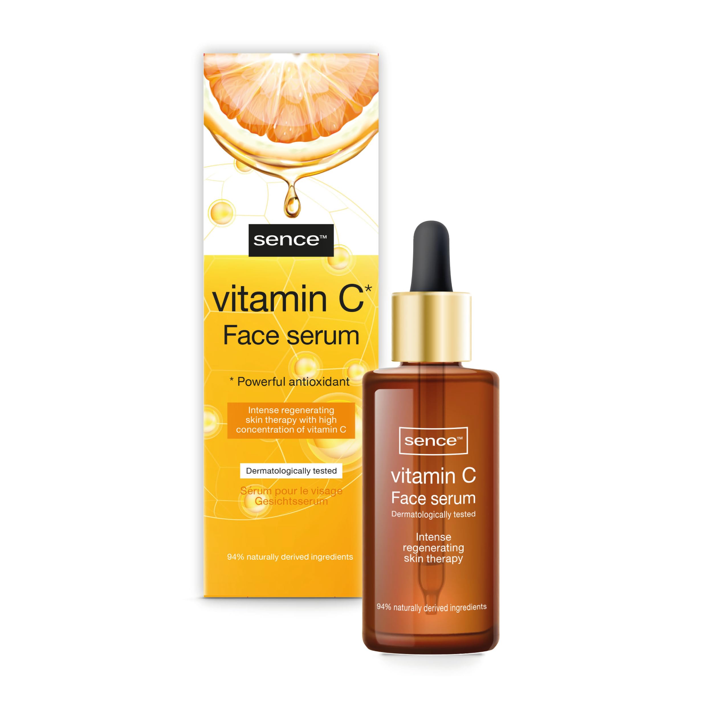 Discover the ultimate solution for radiant, revitalized skin with the Vitamin C Exfoliating Serum. Designed to enhance your skincare routine, this transformative beauty elixir promises a complete facial experience like no other. Enriched with potent Vitamin C and Citric Acid, this serum penetrates deeply and delivers an unparalleled brightening effect, leaving your complexion luminous while also serving as an effective facial pore cleanser. Experience the magic of powerful ingredients like panthenol, AHA, and BHA—essential components of modern skincare regimens. These elements work synergistically to gently exfoliate your skin's surface while nourishing it from within. Glycolic Acid helps gently remove dead skin cells for a smoother appearance free of impurities and signs of aging. Whether you have skin concerns about blemishes or simply want to refine your beauty routine as part of your regular facial cleansing practices. The Sence Vitamin C Exfoliating Serum not only rejuvenates tired skin but is also the perfect addition to any existing skincare collection. Ideal for men and women who appreciate comprehensive skincare solutions that seamlessly integrate into their daily routine, whether for morning rituals or evening skincare. As a powerful skin hydration pack that combines the moisture-retaining properties of hyaluronic acid with the proven purifying effect of citric acid, it's more than just an exfoliator—it's an investment in long-term skincare. Embark on the journey of transformative facial serum treatments today and enjoy radiant skin with confidence tomorrow! INGREDIENTS Aqua, Propanediol, Alcohol Denat., Ascorbic Acid, Glycerin, Polysorbate 20, Butylene Glycol, Solanum Lycopersicum Fruit Extract, PEG-240 HDI Copolymer Bis-Decyltetradeceth-20, HCl, Phenoxyethanol, Ethylhexylglycerin, Parfum, Menthol, Polyacrylic 6 Crosspolymer, T-Butyl Alcohol, Potassium Laurate, Tocopherol, Sodium Benzoate, Potassium Sorbate, Sodium Hydroxide SAFETY WARNING Do not use on sensitive or broken skin. Avoid contact with eyes. In case of contact with eyes, rinse thoroughly with water. If you experience any skin reaction with discomfort or sensitivity, discontinue use immediately and consult a doctor. For external use only. Protect from sunlight. Keep out of reach of children. Please keep the packaging for future reference. See moreHydrating exfoliating power: This hyaluronic acid facial scrub not only removes dead skin cells but also provides a significant boost of vitamins to the skin. For rough skin needs: This serum offers the dual function of a facial treatment and pore-cleansing action, making it suitable even for rough skin. Effective antioxidant: It ensures an even skin tone and brightens the complexion. It exfoliates the skin's surface and activates cell renewal. Complete skincare solution: The high concentration of vitamin C leaves skin radiant. Panthenol hydrates, making it an ideal primary skincare treatment. Advanced vitamin C exfoliation formula: Our vitamin C exfoliating serum combines effective ingredients such as glycolic acid, AHA, and BHA, providing high-quality facial care.Sence Sérum à la vitamine C Face Glow - Soin cosmétique du visage pour homme et femme - Pour un teint plus clair et avec effet de protection UV - Soin du visage végétalien (1 x 30 ml)DESCRIPTION DU PRODUIT DESCRIPTION DU PRODUIT Découvrez la solution ultime pour une peau éclatante et revitalisée avec le sérum exfoliant à la vitamine C. Conçu pour améliorer votre routine de soins de la peau, cet élixir de beauté transformateur promet une expérience de soin du visage complète comme aucun autre. Enrichi en vitamine C forte et acide citrique, ce sérum pénètre profondément et offre un effet éclaircissant incomparable qui donne un teint lumineux tout en servant de nettoyant efficace pour les pores du visage. Découvrez la magie des ingrédients puissants tels que le panthénol, l'AHA et le BHA - des composants essentiels des programmes de soins de la peau modernes. Ces éléments agissent en synergie pour exfolier doucement la surface de votre peau tout en la nourrissant de l'intérieur. L'acide glycolique aide à éliminer en douceur les cellules mortes de la peau pour une apparence plus lisse sans impuretés ni signes de vieillissement. Que vous ayez des problèmes de peau impure ou que vous souhaitiez affiner votre routine beauté dans le cadre de pratiques régulières de nettoyage du visage. Le sérum exfoliant à la vitamine C Sence rajeunit non seulement les peaux fatiguées, mais est également le complément parfait à toute collection de cosmétiques existante. Idéal pour les hommes et les femmes qui apprécient les solutions complètes de soins de la peau qui s'intègrent parfaitement à la routine quotidienne, que ce soit pour les rituels du matin ou les soins du soir. En tant que puissant pack hydratant de la peau qui combine les propriétés de rétention d'humidité de l'acide hyaluronique avec l'effet purifiant de l'acide citrique éprouvé, c'est plus qu'un simple exfoliant, c'est un investissement dans des soins de la peau à long terme. Partez dès aujourd'hui dans le voyage de traitements de sérum pour le visage transformateurs et profitez demain d'une peau éclatante en toute confiance ! INGRÉDIENTS Aqua, propanediol, alcool denat, acide ascorbique, glycérine, polysorbate 20, glycol butylène, extrait de fruit de solanum lycopersic, PEG-240 HDI COPOLYMER BIS-DECYLTETRADECETH-20. HER, PHENOX. Yéthanol, éthylhexylglycérine, parfum, menthol, polyacrylique crosspolymer-6, alcool T-butyl, potassium laurate, tocophérol, benzoate de sodium, sorbate de potassium, hydroxyde de sodium AVERTISSEMENT DE SÉCURITÉ Ne pas utiliser sur une peau sensible ou blessée. Évitez tout contact avec les yeux. En cas de contact avec les yeux, rincer abondamment à l'eau. Si vous constatez que votre peau réagit avec une gêne ou une sensibilité, arrêtez immédiatement l'utilisation et c