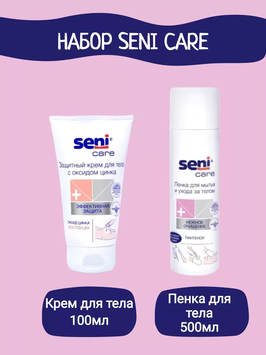 SENI CARE КРЕМ ЗАЩИТНЫЙ С ОКСИДОМ ЦИНКА ДЛЯ ТЕЛА 100МЛ+SENI CARE ПЕНКА Д/МЫТЬЯ/УХОДА Д/ТЕЛ 500МЛ