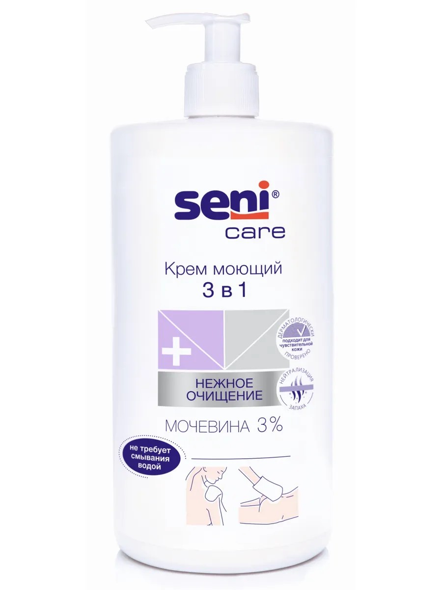 Крем моющий Seni Care 3 в 1 рекомендуется для ежедневного ухода за кожей, подверженной действию раздражающих факторов и чувствительной к воздействию воды и мыла. Оказывает тройное действие, очищает, ухаживает, защищает. Не нарушает натуральный гидролипидный покров, защищающий кожу от вредного влияния внешних факторов. Содержит SINODOR, средство поглощающее запах мочи. Продукт дерматологически протестирован. Гипоаллергенный.