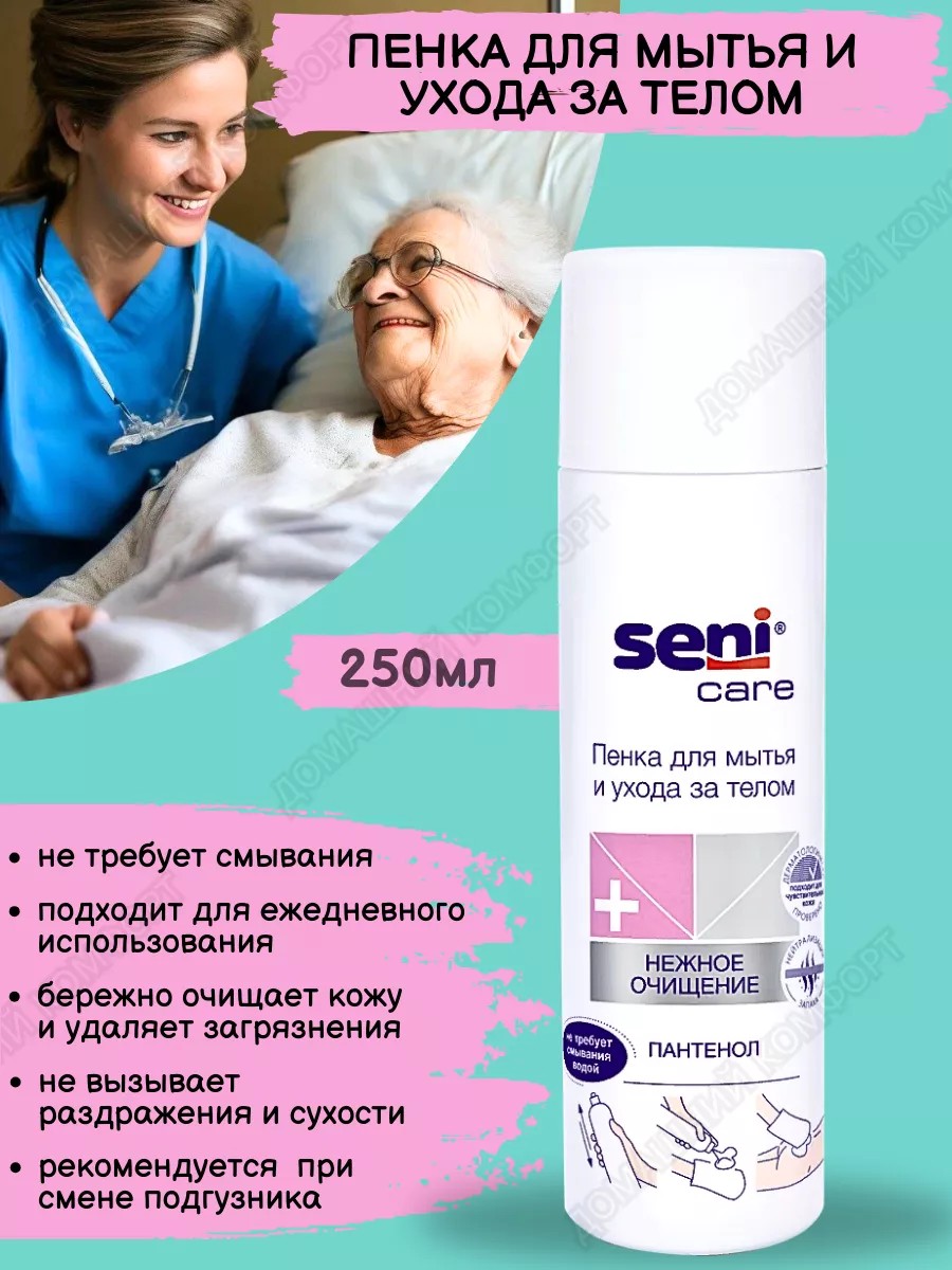 | Комплектация | seni care пенка д/мытья/ухода д/тел 250мл*1шт |