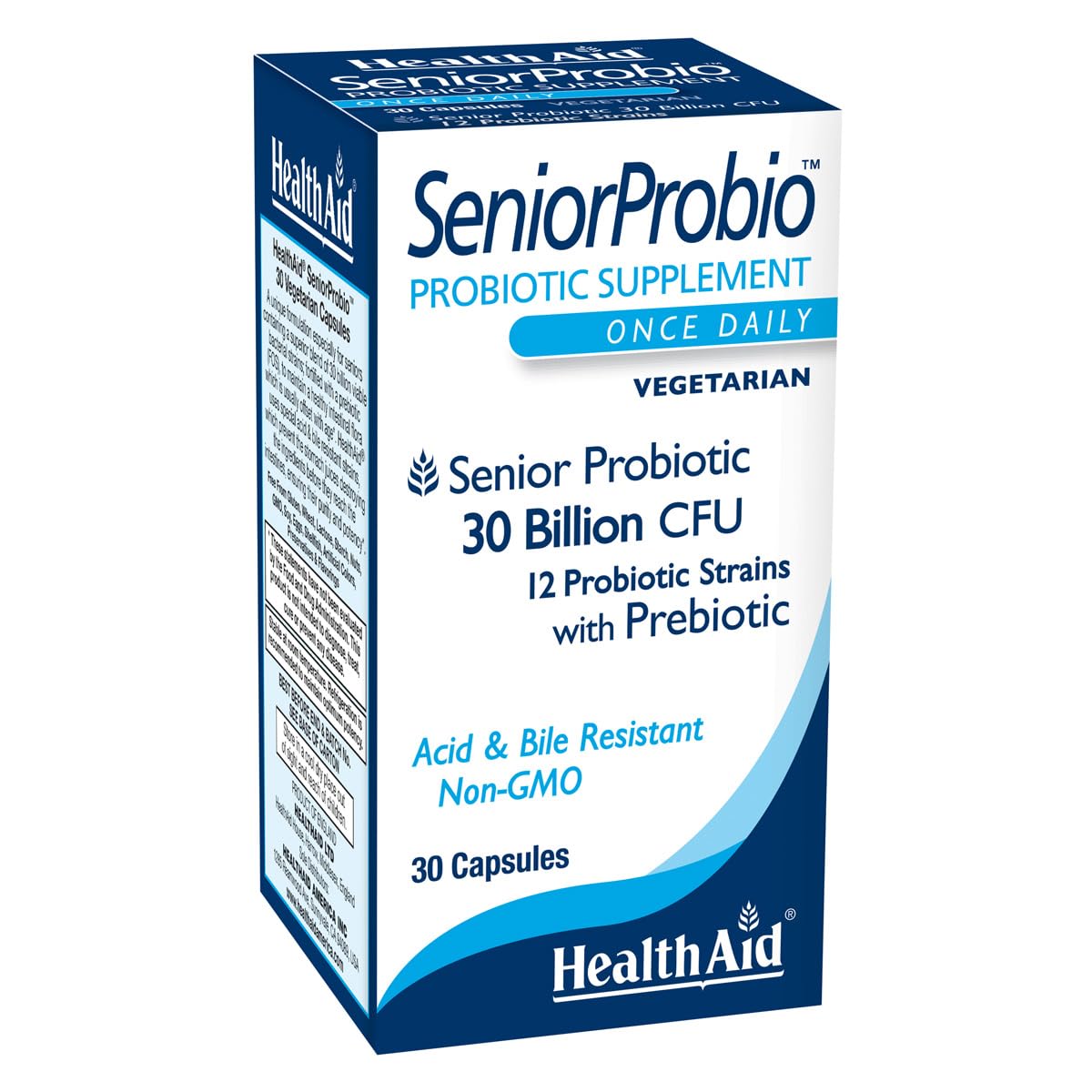 SeniorProbio Once-Daily Probiotic with Prebiotic Fiber | 30 Billion CFU Acid & Bile Resistant Strains | 30 Vegetarian Capsules | Lactose Gluten & GMO-Free