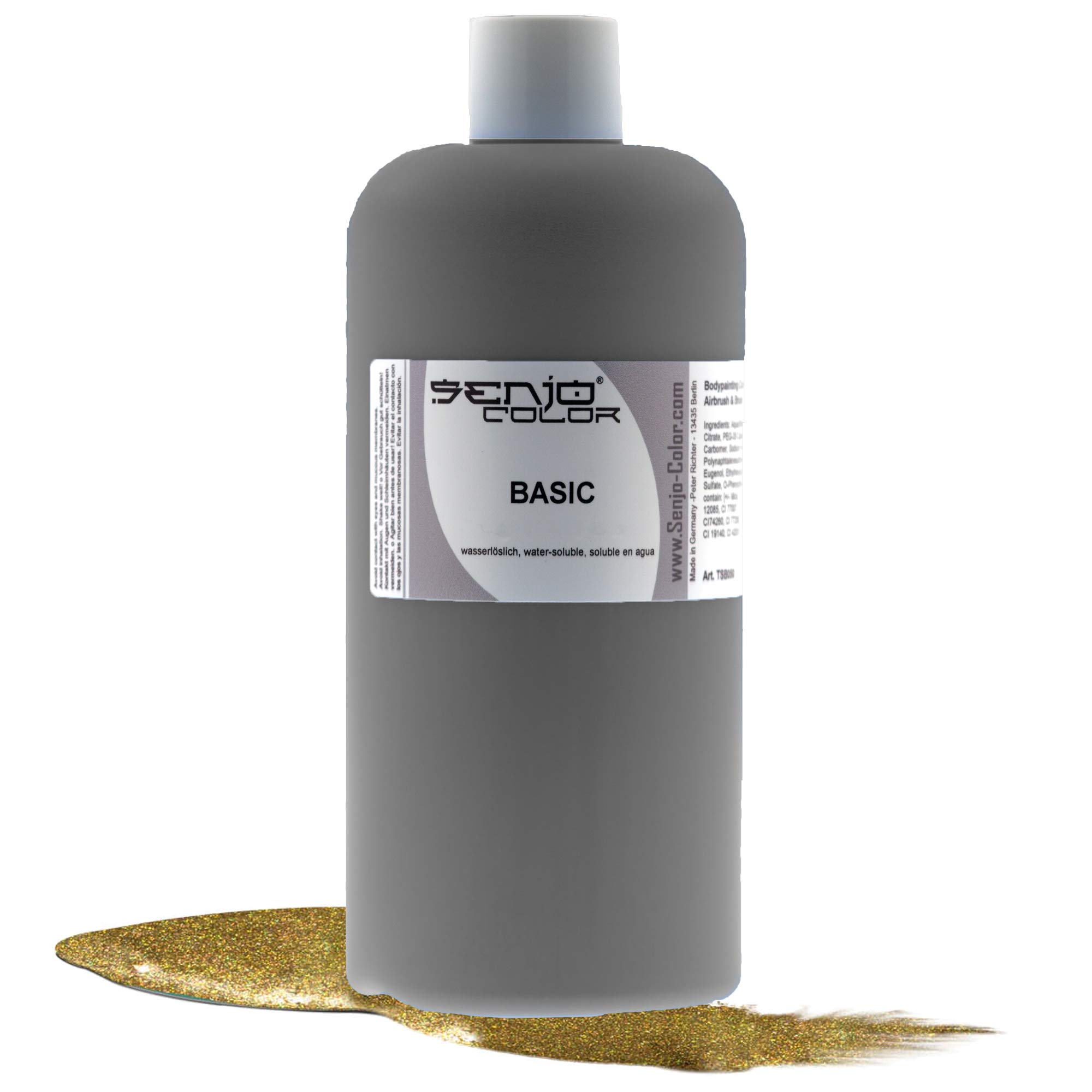 Senjo Color Metallic Basic Body Paint Water-Soluble Cosmetic Body Paint Airbrush and Brush Liquid 500 ml Dermatologically tested face and body paints. Cosmetic products compliant with European regulations - Our body paint is dermatologically tested. Pleasant to the touch - Fragranced and finely pigmented. Stain-resistant: Professional body paints are stain-resistant. Very economical: Full-body coverage from 75 ml. Made in Berlin, Germany. SAFETY WARNING Avoid contact with eyes