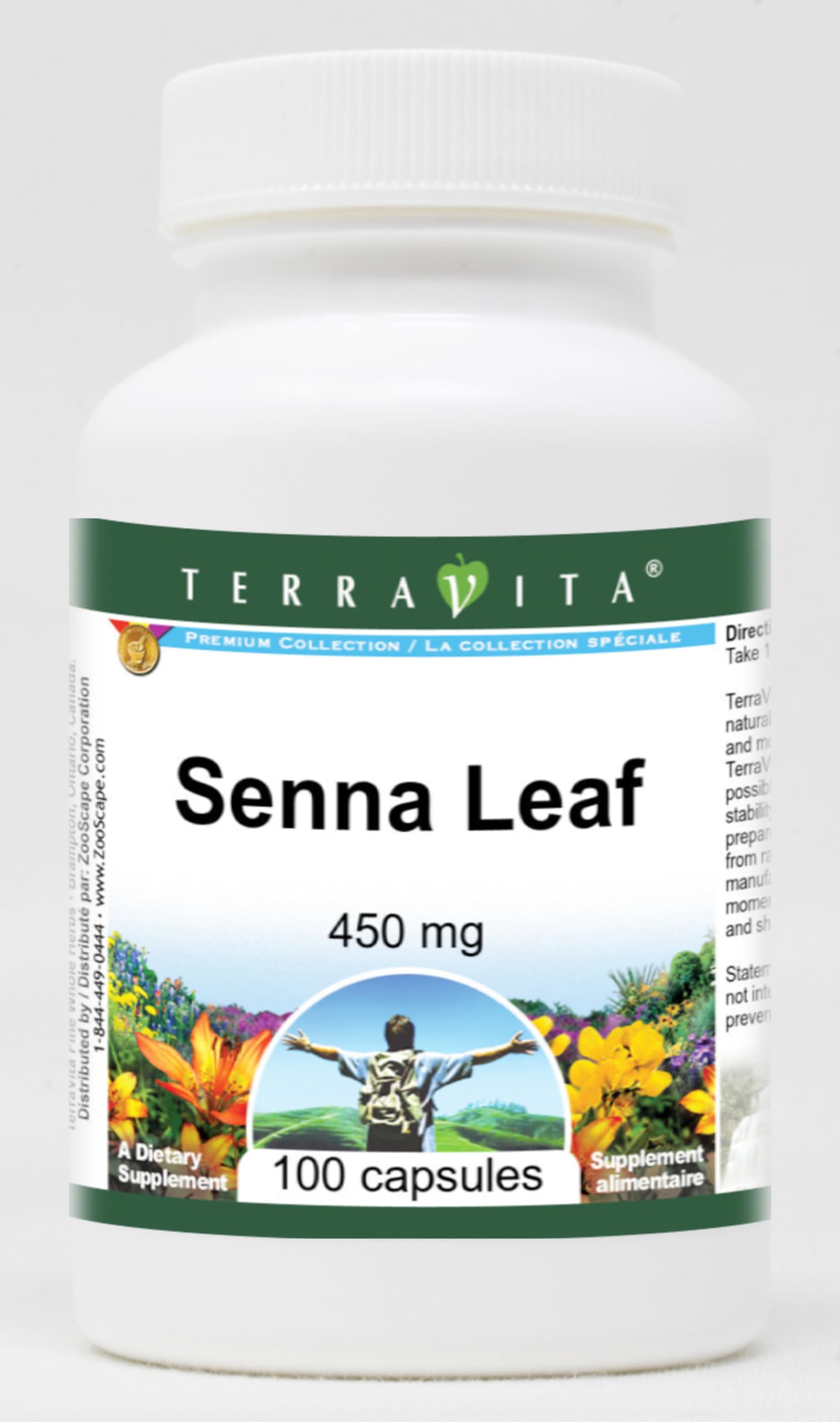 Senna Leaf - 450 mg (100 capsules, ZIN: 511579) Packaged in the United States in a GMP certified facility (Good Manufacturing Practice). No fillers. Manufacturer: TerraVita Size: 100 capsules Easy-to-swallow Capsules in a sealed bottle. Ingredients: Gelatin, Water, Senna - 450 mg
