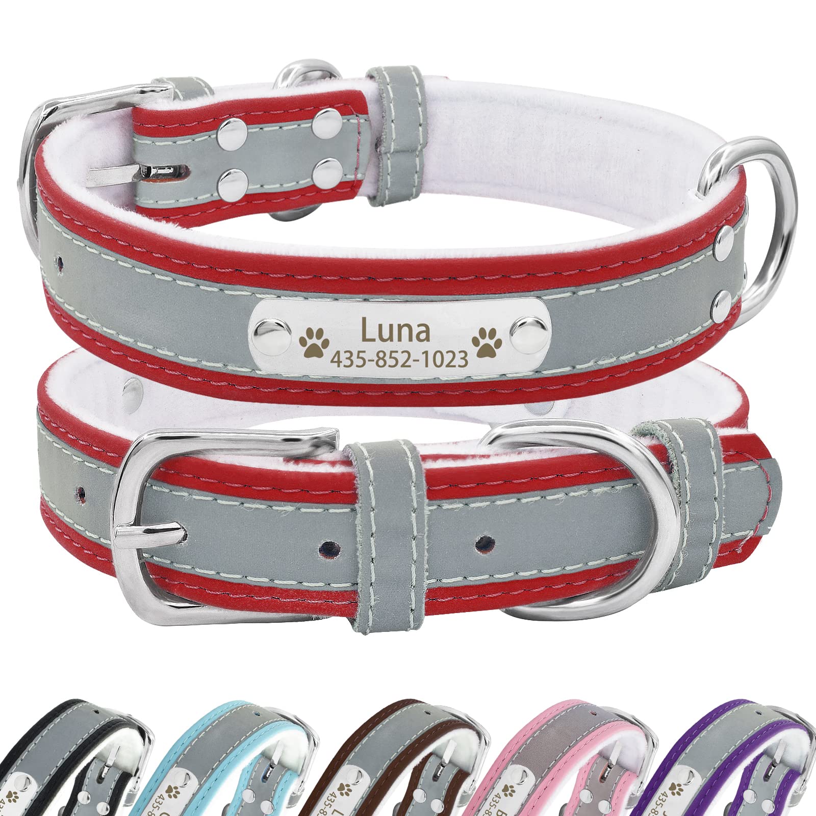 Size: XS (width 1.5 cm, neck circumference 19-25 cm), S (width 1.5 cm, neck circumference 25-32 cm), m (width 2.0 cm, neck circumference 28-36 cm), L (width2.5 cm, neck circumference 34-45 cm), XL (width 3.0 cm, neck circumference 45-55 cm).Please measure your dog's neck and leave space for 2 under your fingers.Tales or cord around the dog's neck.Robust metal material: The reflective dog collar uses a heavy, rust-resistant metal buckle and adds an extra strong, durable D-ring in the middle of the collar.Use this personalized, reflective dog collar with names to use longer.Comfortable and warm fleece feed.Pets can wear it in every season.And the outer layer of the safe reflective collar is made of synthetic leather that is soft and durable.In the feed of the collar, we use comfortable and soft fleece as a feed, which has a certain heat effect and can give the neck of our pet a pleasant wear.So it can protect our pet's neck from damage.Clear anti-loss information-Individual reflective dog collars are delivered with a name tag with laser engraving and we support the engraving of three lines of anti-loss information such as name, telephone number, address or other personalized information.Our engraved contraceptive messages are clear and easy to read so that our pets are found or sent back when they are lost.Safe reflective design-this personalized, reflective dog collar has a broader reflective belt design.If it is illuminated by a light source, the collar will emit more reflective effects.Therefore, our pets can avoid collision by passing vehicles while walking at night to protect the life of our pets.Größe: XS(Breite 1,5 cm , Halsumfang 19-25 cm), S(Breite 1,5 cm , Halsumfang 25-32 cm), M(Breite 2,0 cm , Halsumfang 28-36 cm), L(Breite 2,5 cm , Halsumfang 34-45 cm), XL(Breite 3,0 cm , Halsumfang 45-55 cm). Bitte messen Sie den Hals Ihres Hundes und lassen Sie Platz für 2 unter den Fingern. Maßband oder Schnur um den Hals des Hundes. Robustes Metallmaterial: Das reflektierende Hundehalsband verwendet eine schwere, rostbeständige Metallschnalle und fügt einen extra starken, langlebigen D-Ring in der Mitte des Halsbandes hinzu. Machen Sie dieses personalisierte, reflektierende Hundehalsband mit Namen länger in Gebrauch. Bequemes und warmes Fleecefutter. Haustiere können es zu jeder Jahreszeit tragen. Und die äußere Schicht des sicheren reflektierenden Halsbandes ist aus Kunstleder, das weich und langlebig ist. Im Futter des Kragens verwenden wir als Futter bequemes und weiches Fleece, das einen gewissen Wärmeeffekt hat und dem Hals unseres Haustieres ein angenehmes Tragegefühl geben kann. So kann es den Hals unseres Haustieres vor Schaden schützen. Klare Anti-Verlust-Informationen – Individuelle reflektierende Hundehalsbänder werden mit einem Namensschild mit Lasergravur geliefert und wir unterstützen die Gravur von drei Zeilen von Anti-Verlust-Informationen wie Name, Telefonnummer, Adresse oder andere personalisierte Informationen. Unsere eingravierten Verhütungsbotschaften sind klar und leicht zu lesen, damit unsere Haustiere gefunden oder zurückgesendet werden, wenn sie verloren gehen. Sicheres reflektierendes Design – Dieses personalisierte, reflektierende Hundehalsband verfügt über ein breiteres reflektierendes Riemen-Design. Wenn es von einer Lichtquelle beleuchtet wird, wird das Halsband mehr reflektierende Effekte emittieren. Daher können unsere Haustiere Kollision vermeiden, indem sie Fahrzeuge beim Gehen in der Nacht vorbeifahren, um das Leben unserer Haustiere zu schützen.Senristar Personalisierte Reflektierende Leder Hundehalsband mit Warmem Futter, Individuelle Hundehalsband mit Namensschild Eingraviert für Kleine Mittlere und Große Hunde und Katzen XL(Breite 3,0 cm , Halsumfang 45-55 cm) Rot