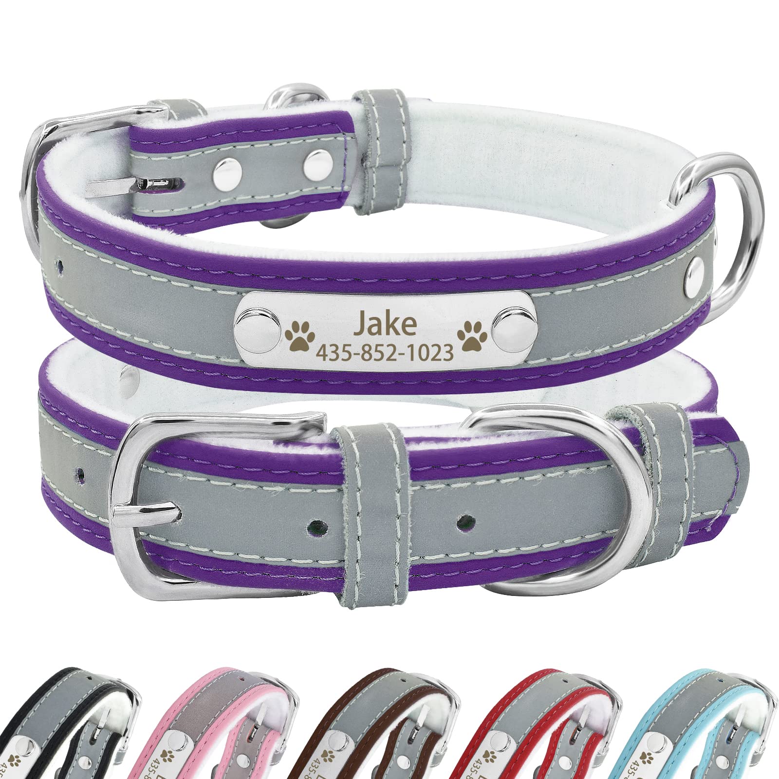 Size: XS (width 1.5 cm, neck circumference 19-25 cm), S (width 1.5 cm, neck circumference 25-32 cm), m (width 2.0 cm, neck circumference 28-36 cm), L (width2.5 cm, neck circumference 34-45 cm), XL (width 3.0 cm, neck circumference 45-55 cm).Please measure your dog's neck and leave space for 2 under your fingers.Tales or cord around the dog's neck.Robust metal material: The reflective dog collar uses a heavy, rust-resistant metal buckle and adds an extra strong, durable D-ring in the middle of the collar.Use this personalized, reflective dog collar with names to use longer.Comfortable and warm fleece feed.Pets can wear it in every season.And the outer layer of the safe reflective collar is made of synthetic leather that is soft and durable.In the feed of the collar, we use comfortable and soft fleece as a feed, which has a certain heat effect and can give the neck of our pet a pleasant wear.So it can protect our pet's neck from damage.Clear anti-loss information-Individual reflective dog collars are delivered with a name tag with laser engraving and we support the engraving of three lines of anti-loss information such as name, telephone number, address or other personalized information.Our engraved contraceptive messages are clear and easy to read so that our pets are found or sent back when they are lost.Safe reflective design-this personalized, reflective dog collar has a broader reflective belt design.If it is illuminated by a light source, the collar will emit more reflective effects.Therefore, our pets can avoid collision by passing vehicles while walking at night to protect the life of our pets.Größe: XS(Breite 1,5 cm , Halsumfang 19-25 cm), S(Breite 1,5 cm , Halsumfang 25-32 cm), M(Breite 2,0 cm , Halsumfang 28-36 cm), L(Breite 2,5 cm , Halsumfang 34-45 cm), XL(Breite 3,0 cm , Halsumfang 45-55 cm). Bitte messen Sie den Hals Ihres Hundes und lassen Sie Platz für 2 unter den Fingern. Maßband oder Schnur um den Hals des Hundes. Robustes Metallmaterial: Das reflektierende Hundehalsband verwendet eine schwere, rostbeständige Metallschnalle und fügt einen extra starken, langlebigen D-Ring in der Mitte des Halsbandes hinzu. Machen Sie dieses personalisierte, reflektierende Hundehalsband mit Namen länger in Gebrauch. Bequemes und warmes Fleecefutter. Haustiere können es zu jeder Jahreszeit tragen. Und die äußere Schicht des sicheren reflektierenden Halsbandes ist aus Kunstleder, das weich und langlebig ist. Im Futter des Kragens verwenden wir als Futter bequemes und weiches Fleece, das einen gewissen Wärmeeffekt hat und dem Hals unseres Haustieres ein angenehmes Tragegefühl geben kann. So kann es den Hals unseres Haustieres vor Schaden schützen. Klare Anti-Verlust-Informationen – Individuelle reflektierende Hundehalsbänder werden mit einem Namensschild mit Lasergravur geliefert und wir unterstützen die Gravur von drei Zeilen von Anti-Verlust-Informationen wie Name, Telefonnummer, Adresse oder andere personalisierte Informationen. Unsere eingravierten Verhütungsbotschaften sind klar und leicht zu lesen, damit unsere Haustiere gefunden oder zurückgesendet werden, wenn sie verloren gehen. Sicheres reflektierendes Design – Dieses personalisierte, reflektierende Hundehalsband verfügt über ein breiteres reflektierendes Riemen-Design. Wenn es von einer Lichtquelle beleuchtet wird, wird das Halsband mehr reflektierende Effekte emittieren. Daher können unsere Haustiere Kollision vermeiden, indem sie Fahrzeuge beim Gehen in der Nacht vorbeifahren, um das Leben unserer Haustiere zu schützen.Senristar Personalisierte Reflektierende Leder Hundehalsband mit Warmem Futter, Individuelle Hundehalsband mit Namensschild Eingraviert für Kleine Mittlere und Große Hunde und Katzen XS(Breite 1,5 cm , Halsumfang 19-25 cm) Violett