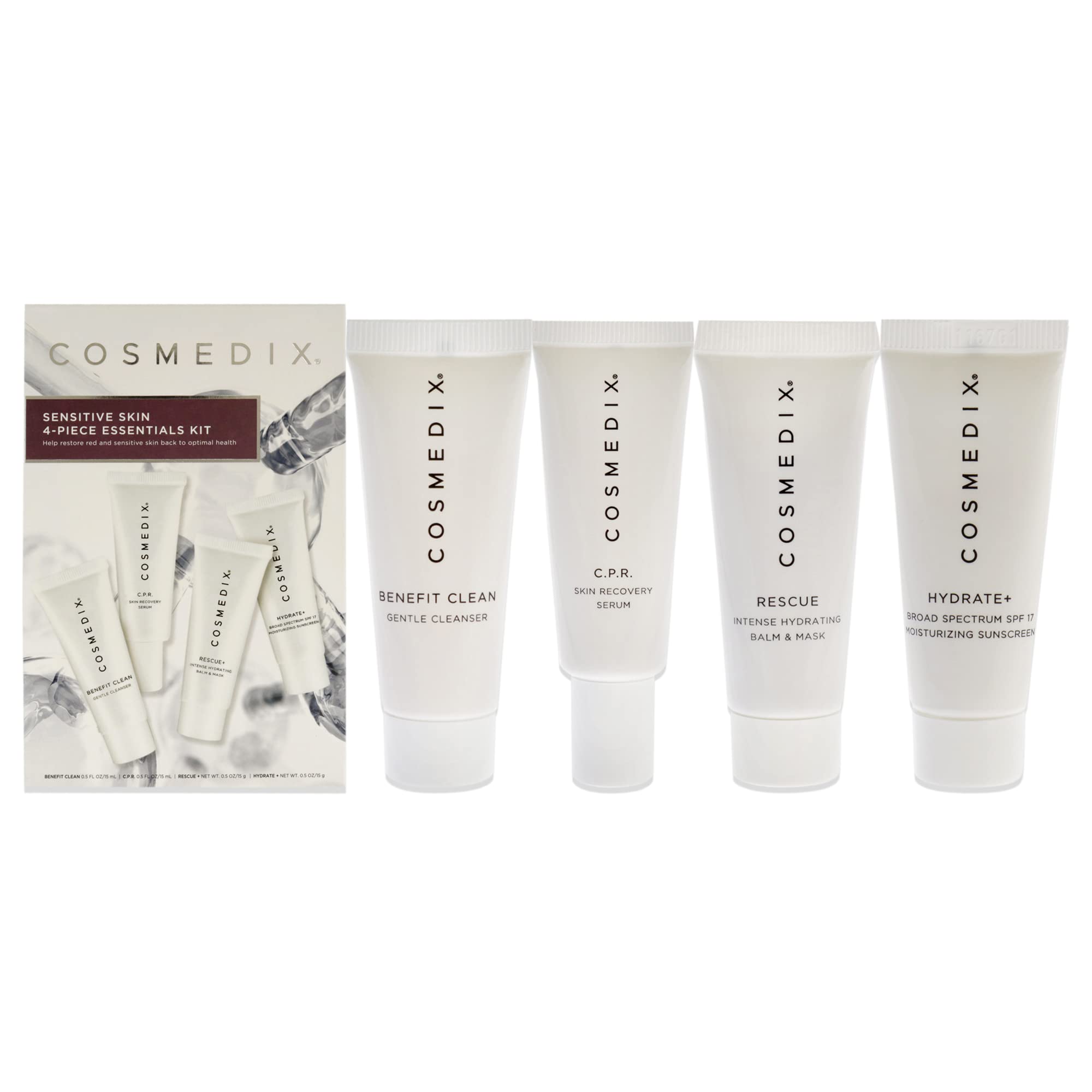 Sensitive Skin Essentials Kit by Cosmedix for Unisex 4 Pc 05oz Benefit Clean 05oz CPR 05oz Rescue 05oz Hydrate Plus