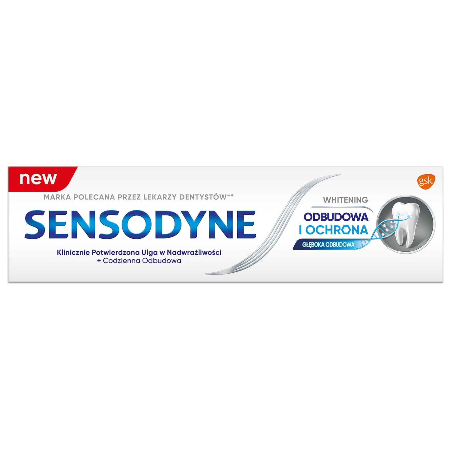 GSK brand products are made with the finest quality ingredients. Unisex adult oral care products. GSK Sensodyne Paste ODBUDOWA I OCHR.White 75 ml by GSK.