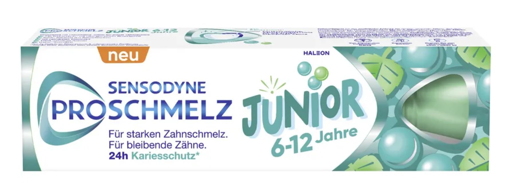 Did you know that it takes up to 3 years for the enamel of new, strong teeth to develop its full strength? That's why it's so important to care for your child's teeth with a toothpaste that protects them from acid erosion and gently strengthens and remineralizes precious enamel. Sensodyne ProSchmelz Junior toothpaste has been specially formulated for children aged 6 to 12. It protects children's tooth enamel and provides 24-hour cavity protection for strong, healthy teeth. Sensodyne ProSchmelz Junior toothpaste, with an age-appropriate fluoride content (1450 ppm fluoride) and 100 natural flavors, helps keep your child's teeth strong and healthy. Developed with dentists, Sensodyne ProSchmelz Junior toothpaste offers gentle care and effective cavity protection for your child's teeth. The low-abrasion formula cleans gently. With a child-friendly Bubble Mint flavor, ProSchmelz Junior toothpaste is vegan. The carton and tube are also recyclable. For twice-daily brushing and a healthy diet for teeth. Does not contain ingredients of animal or animal origin. INGREDIENTS Aqua, Sorbitol, Hydrated Silica, Glycerin, PEG-6, Cocamidopropyl Betaine, Xanthan Gum, Aroma, Sodium Saccharin, Sodium Fluoride, Limonene, Sodium Hydroxide, CI 42090. Contains: Sodium Fluoride (1450 ppm F-). DIRECTIONS FOR USE Fluoride Paste. Always follow the instructions for use. Brush your teeth 3 times a day, then spit out the paste. Avoid swallowing. Keep out of reach of children. Not suitable for children under 6 years old. For this age group, we recommend a 1000 ppm fluoride toothpaste, such as Sensodyne ProSchmelz Kids toothpaste. To avoid excessive ingestion, brush teeth only under supervision. In case of additional fluoride ingestion, consult a dentist or doctor. Do not use if intolerant. Do not use if the outer packaging is open. SAFETY WARNING Fluoride paste. Always follow the instructions for use. Brush your teeth 3 times a day, then spit out the paste. Avoid swallowing. Keep out of reach of children. Not suitable for children under 6 years old. For this age group, we recommend a 1000 ppm fluoride toothpaste, such as Sensodyne ProSchmelz Kids. To avoid excessive ingestion, brush teeth only under supervision. If additional fluoride is ingested, consult a dentist or doctor. Do not use if intolerant. See moreWith 100 natural flavors and a child-friendly taste: Bubble Mint, ProSchmelz Junior toothpaste is vegan. The carton and tube are also recyclable. Contains no ingredients of animal or animal origin. Developed with dentists to protect your child's teeth from enamel erosion and acid-induced cavities. Twice the protection against sugar acids: ProSchmelz Junior toothpaste with optimized fluoride content offers effective cavity protection for strong new teeth. In laboratory tests, compared to natural protection in the mouth. 24-hour cavity protection: ProSchmelz Junior toothpaste with an age-appropriate fluoride content (1,450 ppm fluoride) protects children's teeth from sugar acids and gently cleans them. For twice-daily brushing and a healthy diet. Gentle enamel strengthening: Strong enamel is the best protection against cavities and enamel erosion. ProSchmelz Junior toothpaste gently strengthens children's tooth enamel, helping to keep their teeth strong and healthy.Sensodyne ProSchmelz Dentifrice junior, 6-12 ans, pour émail fort, 75 ml 75 ml (1er Pack)DESCRIPTION DU PRODUIT DESCRIPTION DU PRODUIT Saviez-vous que l'émail des dents nouvelles et durables prend jusqu'à 3 ans pour développer sa pleine force ? C'est pourquoi il est si important de prendre soin des dents de votre enfant avec un dentifrice qui les protège contre la dégradation de l'émail causée par l'acide et renforce et reminéralise doucement l'émail précieux. Le dentifrice Sensodyne ProSchmelz junior a été spécialement conçu pour les enfants âgés de 6 à 12 ans. Il protège l'émail des dents des enfants et offre une protection contre les caries pendant 24 heures pour des dents fortes et saines. Le dentifrice Sensodyne ProSchmelz Junior avec une teneur en fluorure adaptée à l'âge (1 450 ppm de fluorure) et des arômes 100 naturels aide à garder les dents de votre enfant fortes et saines. Développé avec des dentistes, le dentifrice Sensodyne ProSchmelz Junior offre un soin doux et une protection efficace contre les caries pour les dents de votre enfant. La formule à faible abrasion nettoie en douceur. Avec un goût adapté aux enfants : Bubble Mint, le dentifrice ProSchmelz Junior est végétalien. Le carton et le tube sont également recyclables. Pour un brossage des dents 2 fois par jour et une alimentation saine pour les dents ne contient pas d'ingrédients d'origine animale ou animale INGRÉDIENTS Aqua, Sorbitol, Hydrated Silica, Glycerin, PEG-6, Cocamidopropyl Betaine, Xanthan Gum, Aroma, Sodium Saccharine, Sodium Fluoride, Limonene, Sodium Hydroxide, CI 42090. Contient : fluorure de sodium Contient: fluorure de sodium (1450 ppm F-). MODE D'EMPLOI Pâte de fluoride. Suivez toujours les instructions d'utilisation. 2 x jusqu'à maximum Brossez-vous les dents 3 fois par jour, puis crachez, évitez d'avaler. Tenir hors de la portée des enfants. Ne convient pas aux enfants de moins de 6 ans. Pour ce groupe d'âge, nous vous recommandons un dentifrice au fluorure de 1000 ppm, comme le dentifrice Sensodyne ProSchmelz Kids. Pour éviter toute ingestion excessive, brossez les dents uniquement sous surveillance. En cas d'ingestion supplémentaire de fluorure, consultez le dentiste ou le médecin. Ne pas utiliser en cas d'intolérance. Ne pas utiliser lorsque l'emballage extérieur est ouvert. AVERTISSEMENT DE SÉCURITÉ Pâte de fluoride. Suivez toujours les instructions d'utilisation. 2 x jusqu'à maximum Brossez-vous les dents 3 fois par jour, puis crachez, évitez d'avaler. Tenir hors de la portée des enfants. Ne convient pas aux enfants de moins de 6 ans. Pour ce groupe d'âge, nous vous recommandons un dentifrice au fluorure de 100