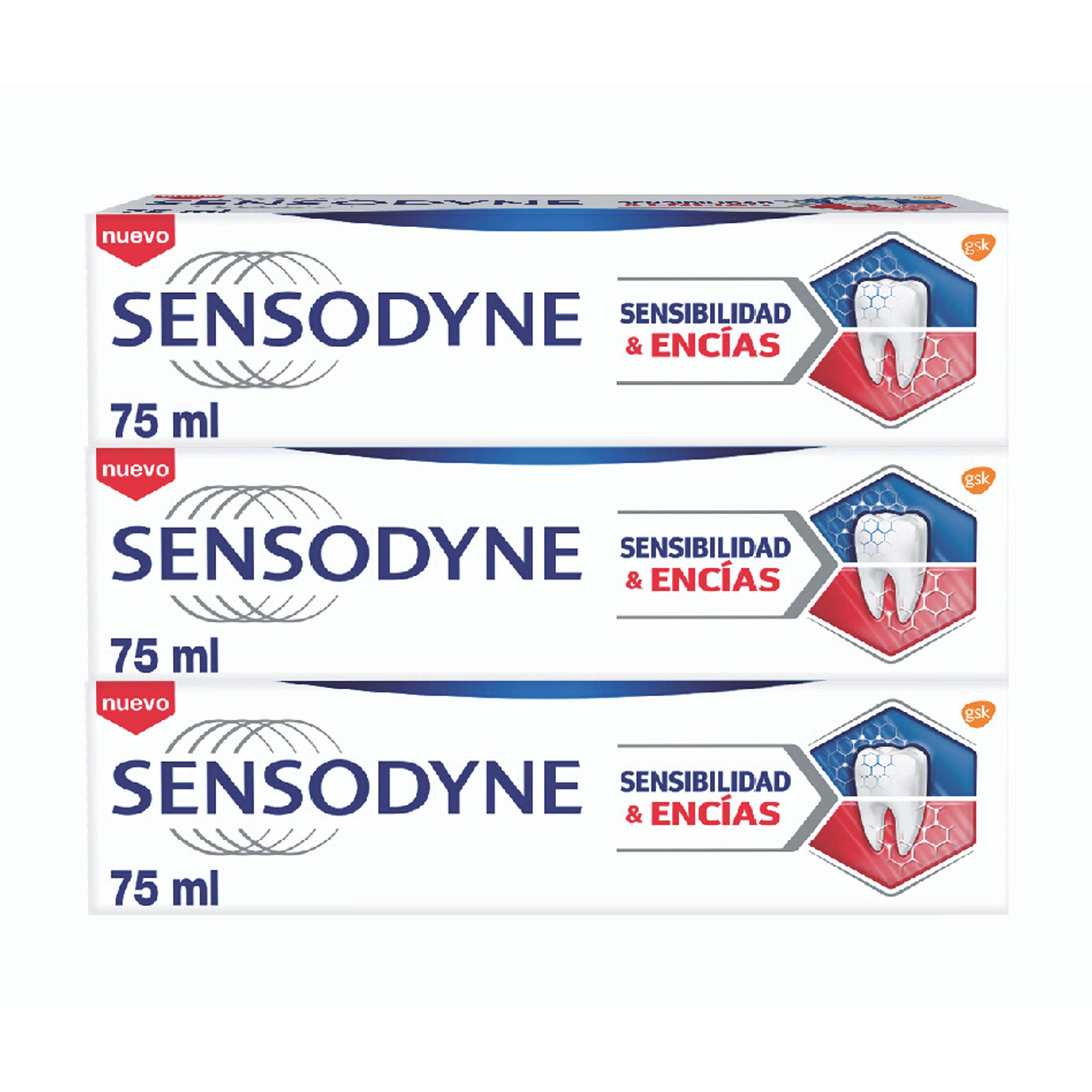 Sensodyne Sensibility and Encías is a dual relief toothpaste for sensitivity and gum problems. SAFETY WARNING Do not swallow. Keep out of reach of children. Discontinue use if irritation occurs.With twice-daily brushing, it helps remove stains for whiter teeth. Creates a protective layer over sensitive areas, relieves tooth sensitivity, and directs and removes plaque to help reduce gum problems. Clinically tested formula to relieve tooth sensitivity and improve gum health. Sensodyne Sensibility et Encías est une pâte à dents double soulagement pour la sensibilité et les problèmes de gencives. AVERTISSEMENT DE SÛRETÉ Ne pas avaler. Conserver hors de portée des enfants. Arrêter l'utilisation en cas d'irritation.Avec brossage deux fois par jour, il aide à éliminer les taches pour des dents plus blanches. Crée une couche protectrice sur les zones sensibles, soulage la sensibilité dentaire et dirige et élimine la plaque bactérienne pour aider à réduire les problèmes de gencives. Formule cliniquement testée pour soulager la sensibilité dentaire et améliorer la santé des gencives.