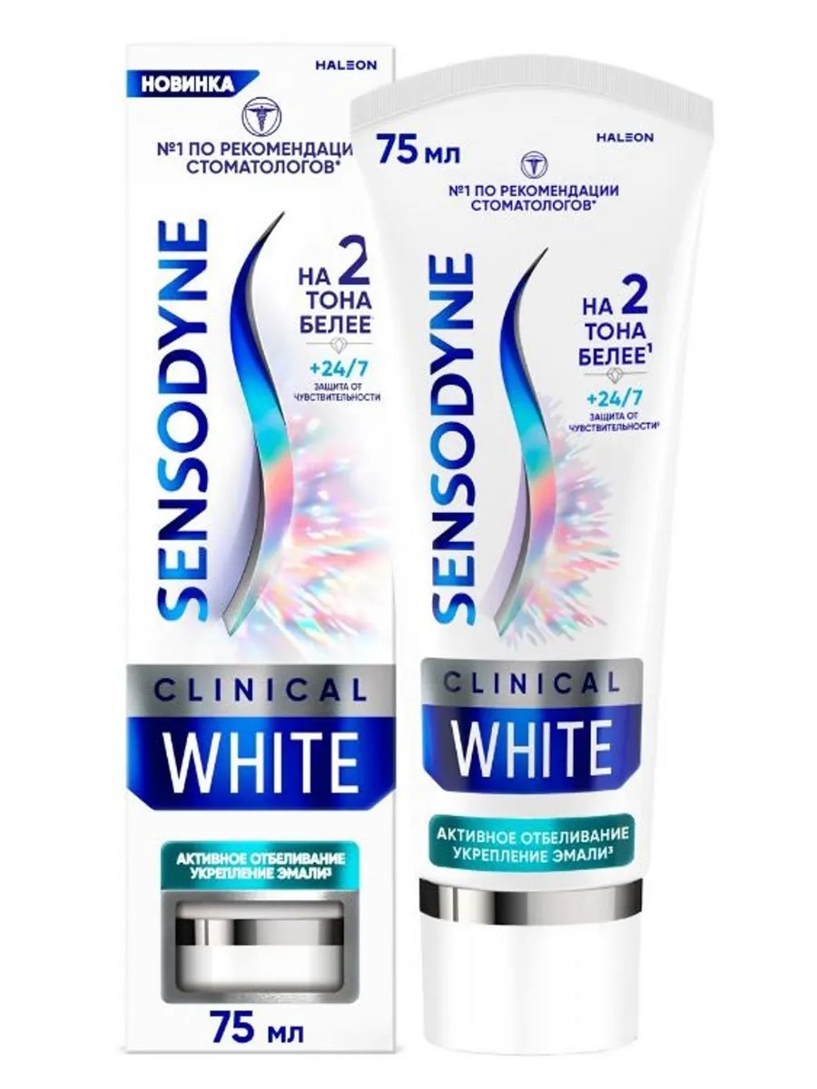 Sensodyne Toothpaste active whitening enamel strengthening 75 ml. Triple-action formula whitens, polishes and protects your teeth from dark plaque, and also protects against sensitivity: 1. Clinically proven: teeth whitening by 2 shades. 2. Active ingredients for polishing, whitening and strengthening enamel. 3. 24/7 protection from sensitivity. 4. Suitable for daily use, safe for enamel. Ingredients: Aqua, Sorbitol, Hydrated Silica, Glycerin, Pentasodium Triphosphate, Potassium Nitrate, PEG-6, Sodium Lauryl Sulfate, Aroma, Alumina, Xanthan Gum, Cocamidopropyl Betaine, Sodium Hydroxide, Carrageenan, Sodium Saccharin, Sodium Fluoride, Limonene.