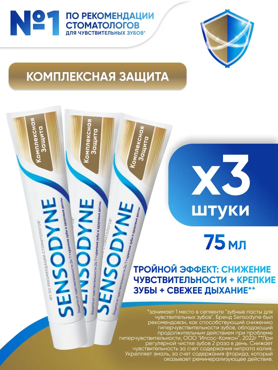 Sensodyne Зубная паста Комплексная защита 75 мл 3 шт