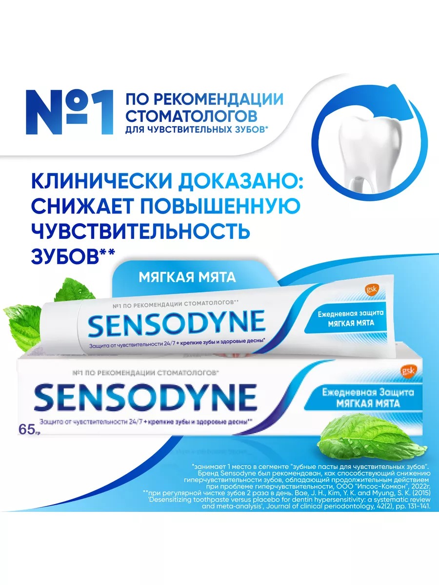 Зубная паста для чувствительных зубов с фтором Sensodyne "Ежедневная защита" — надежный барьер против чувствительности зубов. Зубные пасты Sensodyne помогают обеспечивать длительную защиту чувствительных зубов для снижения болезненных ощущений, вызванных повышенной чувствительностью зубов, а также способствуют профилактике кариеса и свежести вашего дыхания.