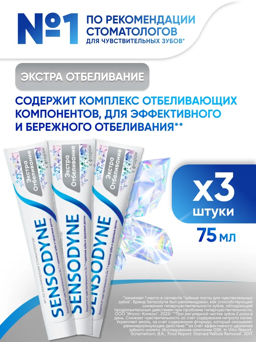 Sensodyne Зубная паста Экстра Отбеливание 75 мл 3 шт