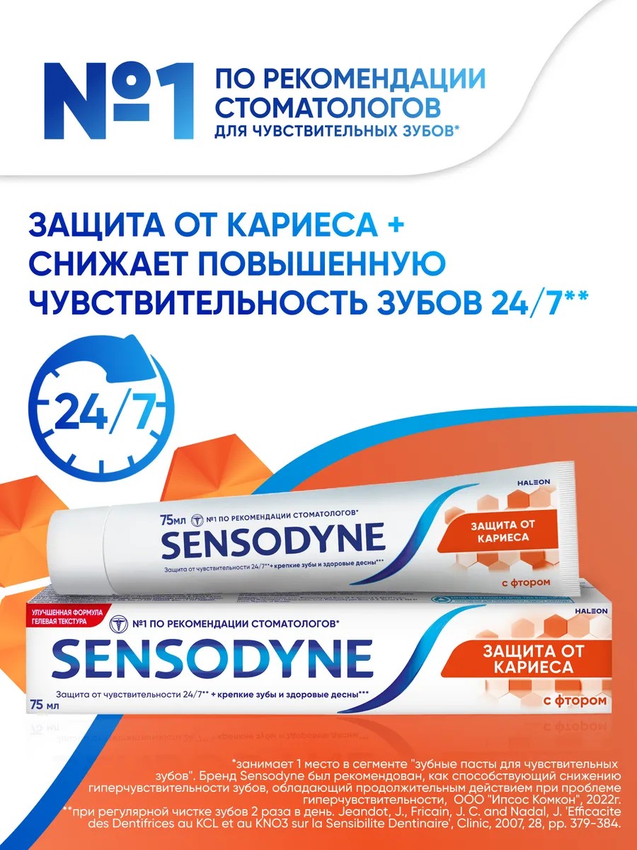 Не отказывайтесь от любимых блюд! Зубная паста Sensodyne с фтором быстро снижает дискомфорт от чувствительности зубов и обеспечивает комплексный уход за полостью рта.