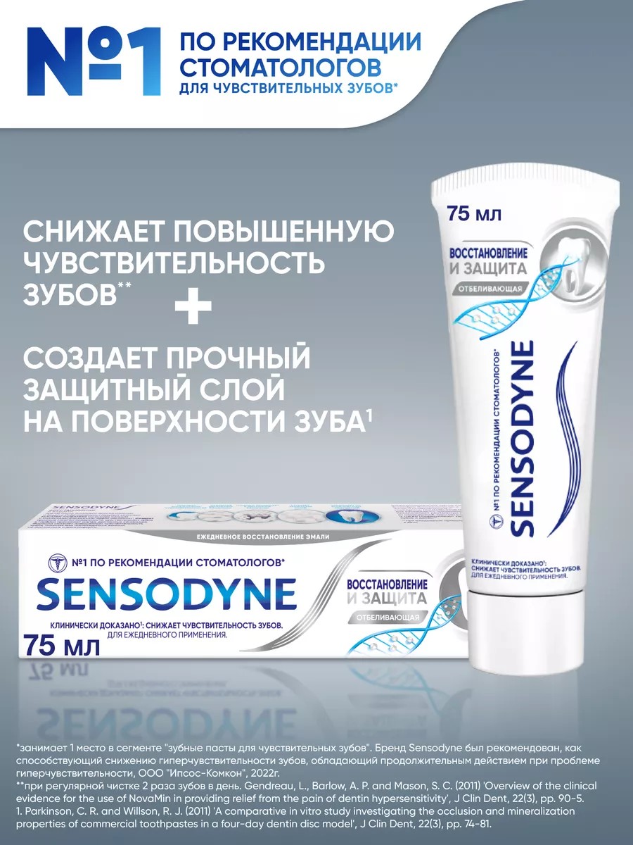 Зубная паста Sensodyne Восстановление и Защита Отбеливающая – комплексный уход для чувствительных зубов