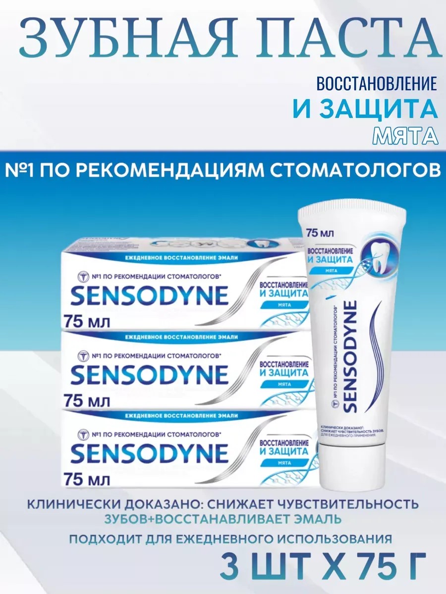 Sensodyne Зубная паста Сенсодин Восстановление и Защита Мята -3 шт