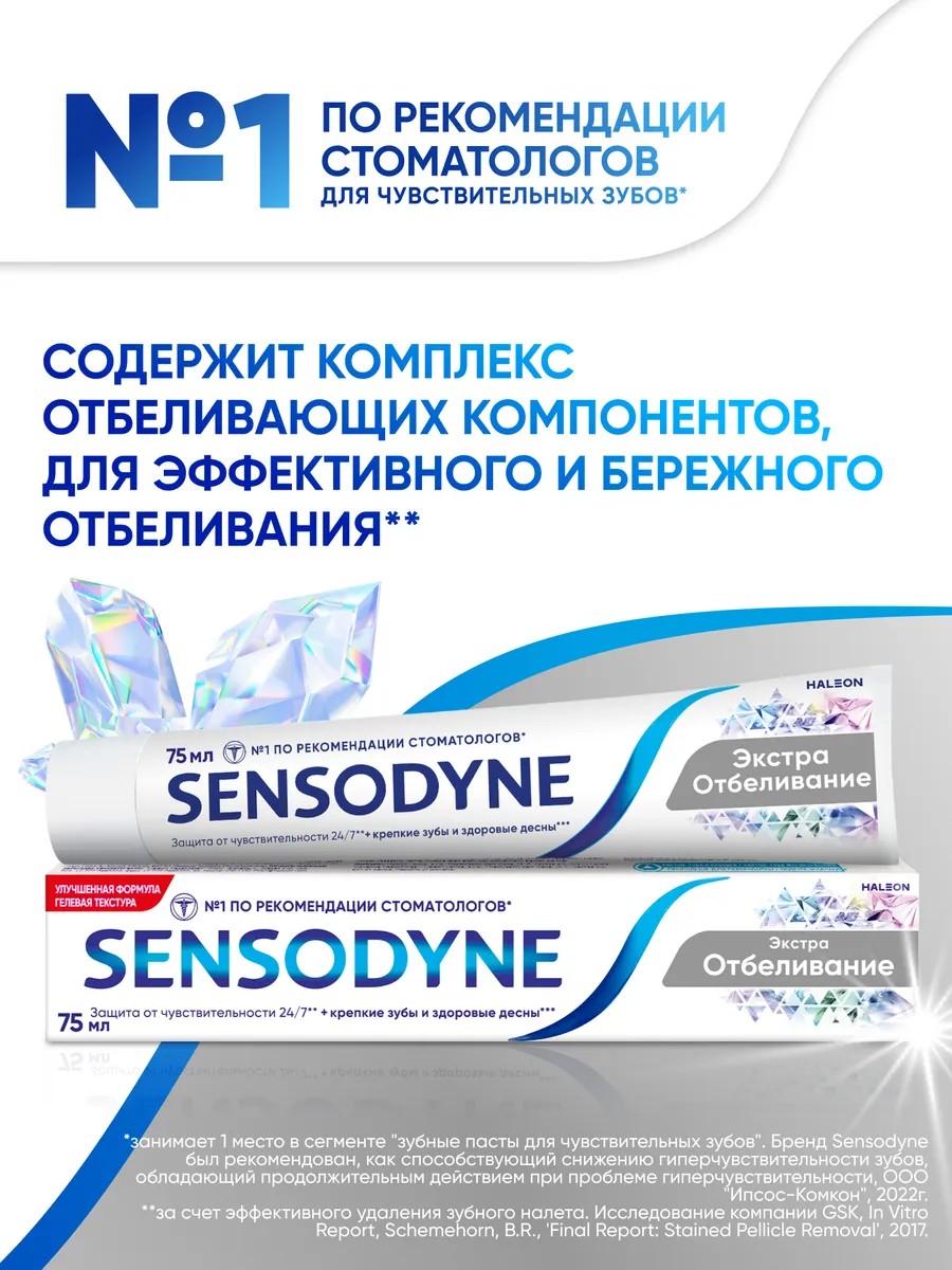 Паста для отбеливания зубов Sensodyne Экстра Отбеливание – двойное действие: бережное отбеливание и защита чувствительных зубов