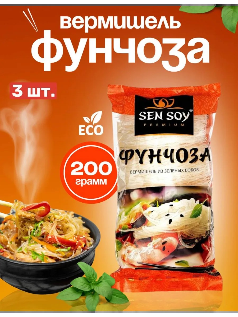 Фунчоза Сенсой из зеленых бобов - это премиальная стеклянная, из зеленых бобов лапша быстрого приготовления. Ее по достоинству оценят ценители макарон и вермишели. Фунчоза Sen Soy легкая в приготовлении. Лапша не содержит глютена и отлично подойдет для людей с непереносимостью глютена, а также для диетического питания и для вегетарианцев, ее можно есть в Пост. Стеклянная Фунчоза сен сой имеет легкий вкус и прекрасно сочетается с мясом, курицей, рыбой, морепродуктами, овощами, а также ее можно добавлять в салат и сочетать с разничными соусами. Вермишель Фунчоза не требует варки, достаточно просто опустить ее в горячую воду и подождать 10 минут. Бобовая стеклянная вермишель подойдет в качестве гарнира к блюдам азиатской кухни.