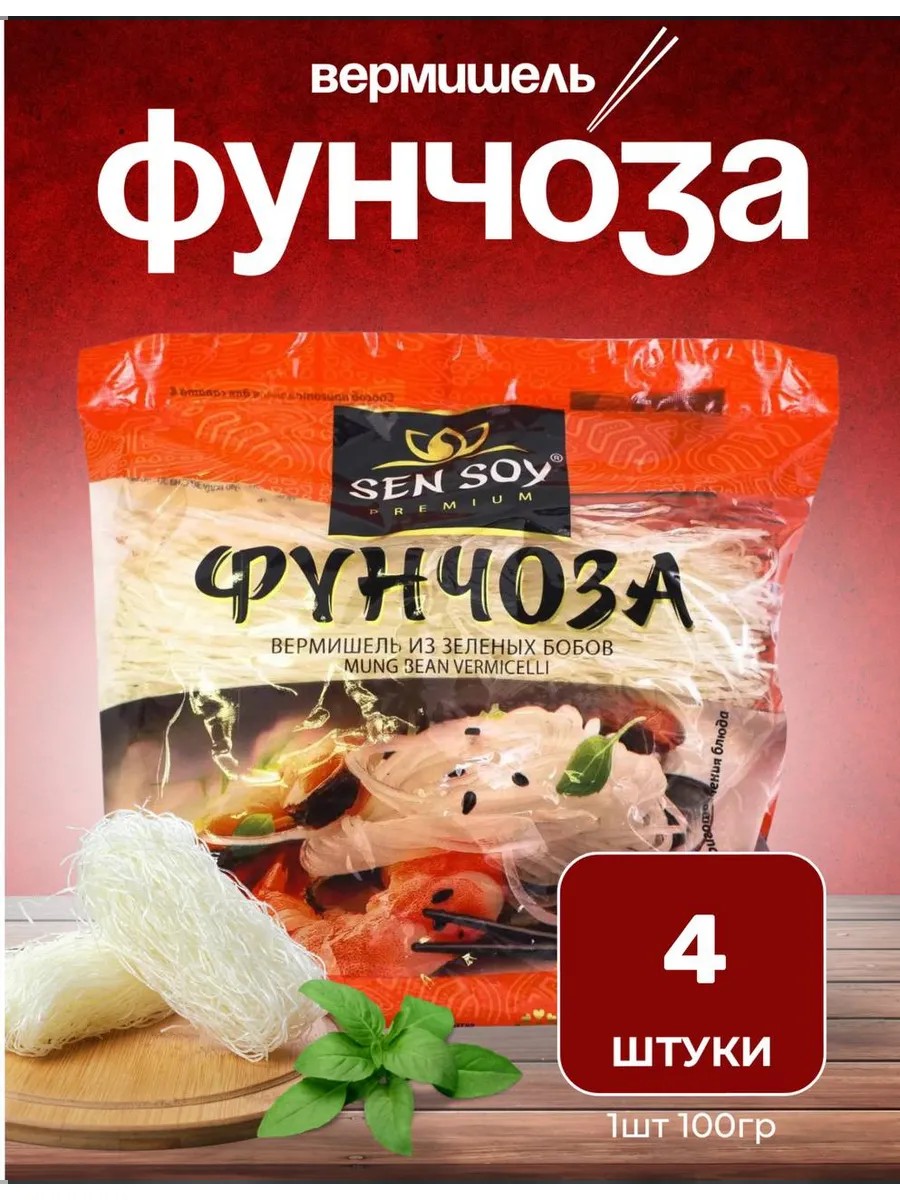 Фунчоза Сенсой из зеленых бобов - это премиальная стеклянная, из зеленых бобов лапша быстрого приготовления. Ее по достоинству оценят ценители макарон и вермишели. Фунчоза Sen Soy легкая в приготовлении. Лапша не содержит глютена и отлично подойдет для людей с непереносимостью глютена, а также для диетического питания и для вегетарианцев, ее можно есть в Пост. Стеклянная Фунчоза сен сой имеет легкий вкус и прекрасно сочетается с мясом, курицей, рыбой, морепродуктами, овощами, а также ее можно добавлять в салат и сочетать с разничными соусами. Вермишель Фунчоза не требует варки, достаточно просто опустить ее в горячую воду и подождать 10 минут. Бобовая стеклянная вермишель подойдет в качестве гарнира к блюдам азиатской кухни.