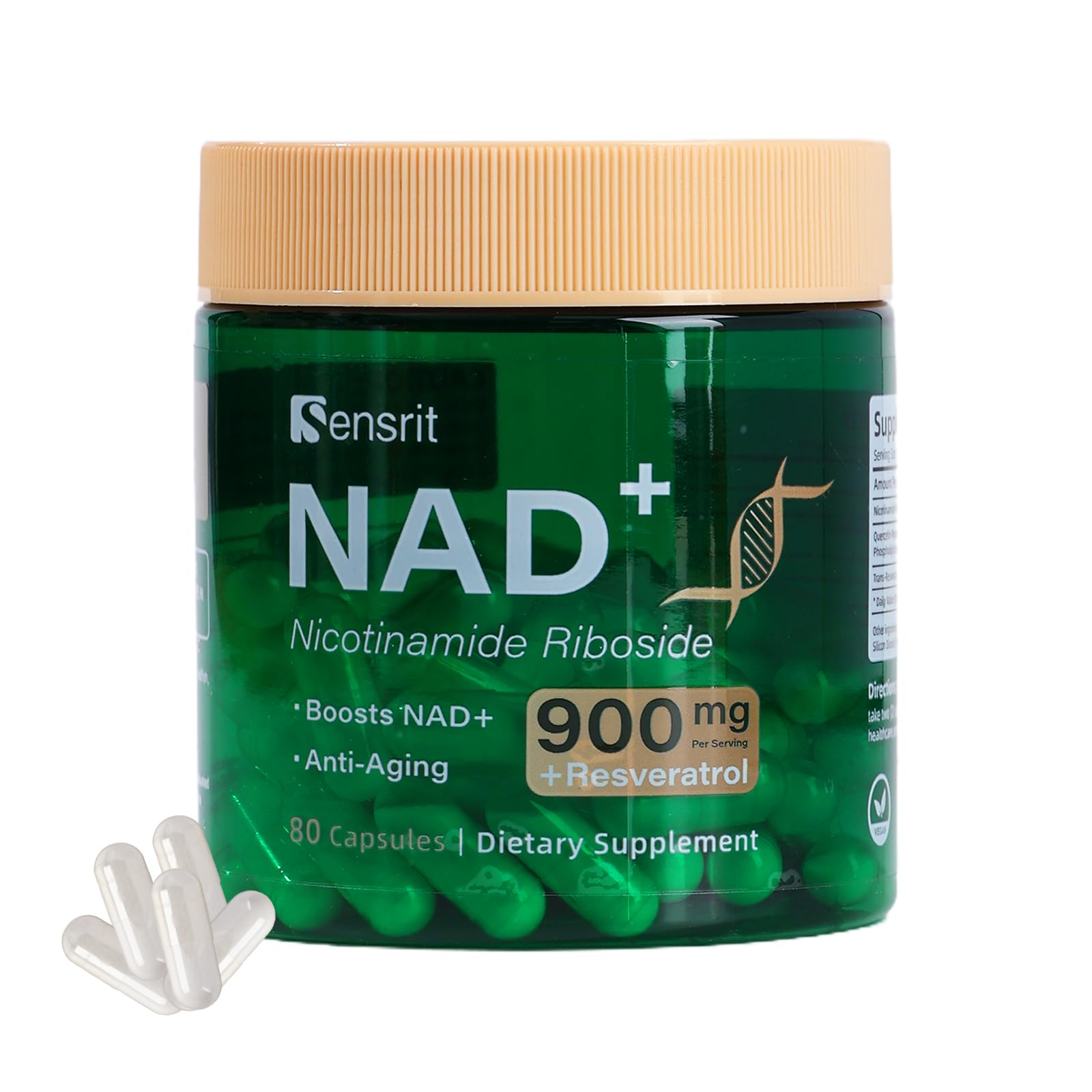 Sensrit NAD+ Supplement with Nicotinamide Riboside & Resveratrol | Cellular Energy & Mental Clarity Support | 40 Servings | Vegan Non-GMO Gluten Free