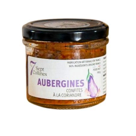 Discover this delicious spread of candied eggplant with garlic and coriander! The vegetables, carefully selected for their quality, are of French origin. Free from preservatives and additives, this candied eggplant spread is perfect as an appetizer on toast or as a lovely accompaniment to pasta. Vegan recipe. 96 of ingredients are of French origin. This Candied Eggplant and Coriander Spread is made with the following ingredients: Eggplant (59 ), tomatoes, onions and garlic (of French origin), olive oil, Guérande salt, coriander seeds, and pepper. The eggplants come from the Île-de-France, Sarthe, and Rhône regions. The Sept Collines cannery has partnered with local producers to prioritize short supply chains and guarantee the freshness and quality of the ingredients. The two cannery managers carefully monitor the quality of the vegetable production and maintain direct contact with each producer to examine the products and develop recipe ideas. Respecting seasonality is also a key criterion in selecting vegetables to preserve their flavor. INGREDIENTS Eggplant (59 ), Tomatoes, Onions and Garlic (origin France), Olive Oil, Guérande Salt, Coriander Seeds, Pepper.Sept Collines - Aubergines Confites à la Coriandre 100gDESCRIPTION DU PRODUIT DESCRIPTION DU PRODUIT Découvrez cette délicieuse tartinade d'Aubergines confites relevée à l'Ail et à la Coriandre ! Les légumes, soigneusement sélectionnés pour leur qualité, sont d'origine France. Sans conservateurs ni additifs, ces aubergines confites se mangent à l'apéritif sur un toast, ou accompagnent joliment vos pâtes. Recette Végan. 96 d'ingrédients d'origine France. Cette tartinade d'Aubergines Confites à la Coriandre est élaborée à partir des ingrédients suivants : Aubergines (59 ), Tomates, Oignons et Ail origine France, huile d'olive, sel de Guérande, Coriandre en grains, poivre. Les aubergines proviennent de l'Île-de-France, de la Sarthe et de la région du Rhône. La conserverie des Sept Collines a établi un partenariat avec des producteurs locaux, afin de privilégier les circuits courts et de garantir la fraîcheur et la qualité des ingrédients. Les deux gérants de la conserverie scrutent attentivement la qualité de la production de légumes et entrent en contact direct avec chaque producteur pour examiner les produits et concevoir des idées de recettes. Le respect de la saisonnalité fait également partie des critères de sélection des légumes afin de préserver leur goût. INGRÉDIENTS Aubergines (59 ), Tomates, Oignons et Ail origine France, huile d'olive, sel de Guérande, Coriandre en grains, poivre.