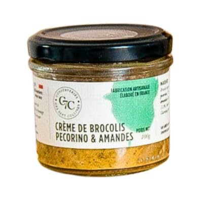 This Broccoli, Pecorino, and Almond Spread is made with the following ingredients: Broccoli (77 ), Pecorino cheese, onions, almonds, cream, sunflower oil, Guérande salt, and chili pepper. The broccoli comes from the Île-de-France and Sarthe regions. To ensure the freshest vegetables, the Sept Collines cannery has partnered with local producers, prioritizing short supply chains and guaranteeing the freshness and quality of the ingredients. The cannery's two managers carefully monitor the quality of vegetable production and maintain direct contact with each producer to examine the products and develop recipe ideas. Respecting seasonality is also a key criterion in selecting vegetables to preserve their flavor. Enjoy this creamy broccoli spread, enhanced with sheep's cheese and lightly flavored with almonds! With no preservatives or additives, this delicious spread is excellent on a slice of bread, sprinkled with a little Parmesan. It will delight your taste buds and add a touch of freshness to your appetizers. INGREDIENTS Broccoli (77 ), Pecorino cheese, Onions, Almonds, Cream, Sunflower oil, Guérande salt, Chili pepper.Sept Collines - Velouté de Brocolis au Pecorino et Amandes 100gDESCRIPTION DU PRODUIT DESCRIPTION DU PRODUIT Cette tartinade de Brocolis au Pecorino et Amandes est élaborée à partir des ingrédients suivants : Brocolis (77 ), Pecorino, Oignons, Amandes, crème, huile de Tournesol, sel de Guérande, piment. Les Brocolis proviennent de l'Île-de-France et de la Sarthe. Pour choisir des légumes frais, la conserverie des Sept Collines a établi un partenariat avec des producteurs locaux, afin de privilégier les circuits courts et de garantir la fraîcheur et la qualité des ingrédients. Les deux gérants de la Conserverie scrutent attentivement la qualité de la production de légumes et entrent en contact direct avec chaque producteur pour examiner les produits et concevoir des idées de recettes. Le respect de la saisonnalité fait également partie des critères de sélection des légumes afin de préserver leur goût. Savourez ce velouté de Brocolis, relevé au fromage de brebis et légèrement parfumé aux Amandes ! Sans conservateurs ni additifs, cette délicieuse tartinade est excellente sur une tartine de pain, saupoudrée d'un peu de parmesan.. Elle ravira vos papilles et apportera une touche de fraîcheur à votre apéritif. INGRÉDIENTS Brocolis (77 ), Pecorino, Oignons, Amandes, crème, huile de Tournesol, sel de Guérande, piment.