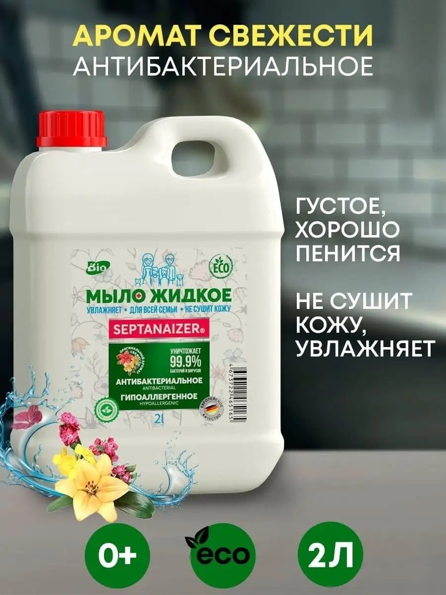 Антибактериальное ЖИДКОЕ МЫЛО для рук и тела SEPTANAIZER - это экологичный современный продукт на основе европейского сырья, разработанный специально для частого применения. Повышенные моющие способности, густая пена, усиленный увлажняющий состав бережно очищают и защищают кожу. Мыло гипоаллергенно и экологически безопасно. Подходит для всей семьи, а также для мытья игрушек и других предметов. Эффективно уничтожает до 99, 9% бактерий, вирусов, плесени и грибов. Нежное мыло с легкой текстурой оставляет на коже ненавязчивый запах цветочной свежести, который держится продолжительное время. SEPTANAIZER имеет оптимальный Ph, бережно воздействует, не вызывает раздражений и легко смывается. Экономичный расход за счет густой консистенции. Клинические испытания доказали лучшую моющую, увлажняющую и защитную способность по сравнению с 94% отобранных аналогов. Результат ежедневного применения - это не только чистота и увлажнение кожи, но и антибактериальная защита всей семьи!