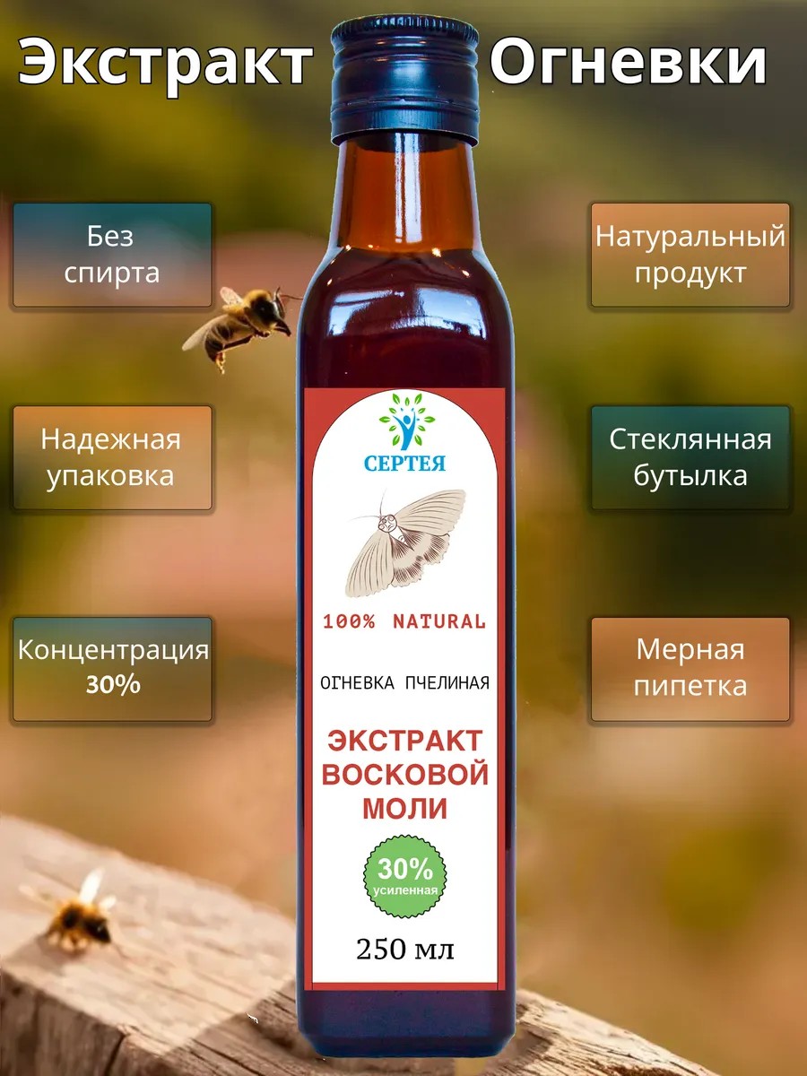 Экстракт восковой моли Огневки пчелиной 30% усиленная-250 мл